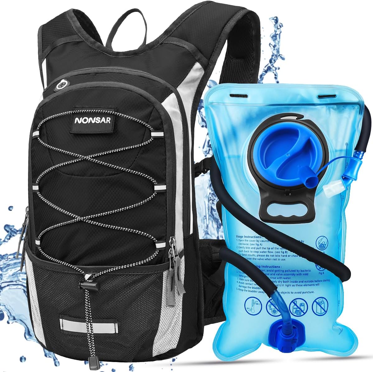 🚵♀️GIFT CHOICE: The water backpack is designed with a novel patchwork of colors, focusing on a sense of style and individuality.Its versatile design makes it suitable for a range of outdoor activities such as camping, cycling, climbing, running and other occasions.NONSAR hydration bag is a great gift for families and friends.