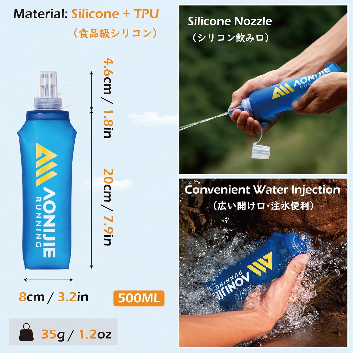 Water Bottles Included: Comes with two 500 ml soft flasks; made of BPA-free TPU material; leak-resistant and pressure-tolerant for reliable hydration during outdoor activities