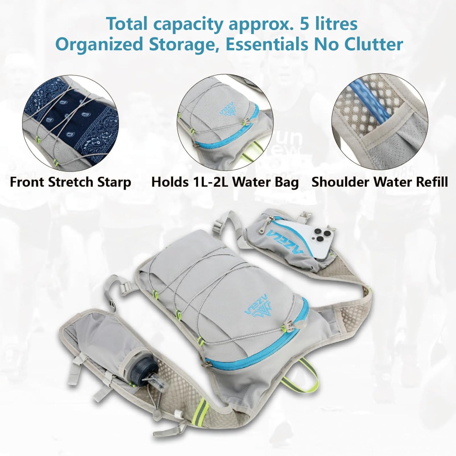 Mutifultional Compartment: This hydration backpack is well designed with compartments for water bag; energy; mobile phone; water bottle; cards; making it convenient for travelling with one bag