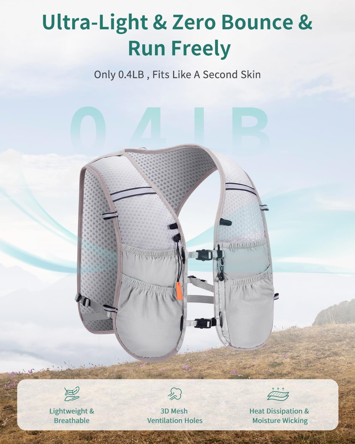 【Ultra Lightweight & Breathable Design】 Made from premium breathable mesh fabric, this hydration vest is ultra-lightweight and keeps your body cool and dry during long runs, trail running, or intense workouts.