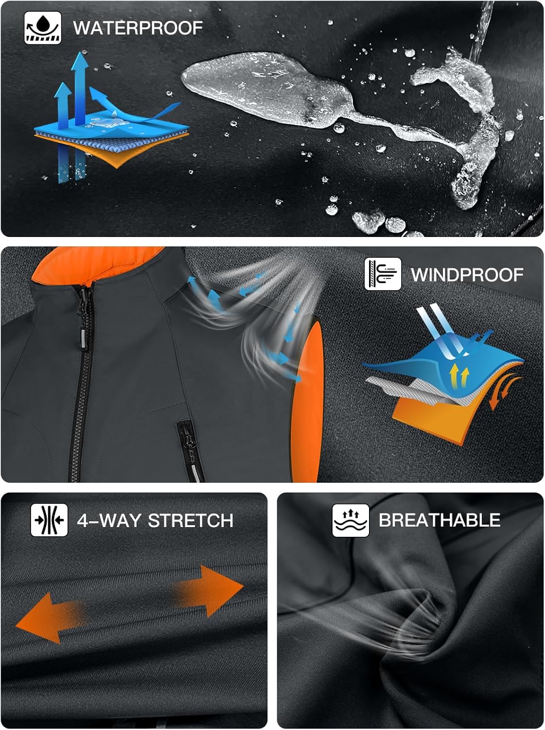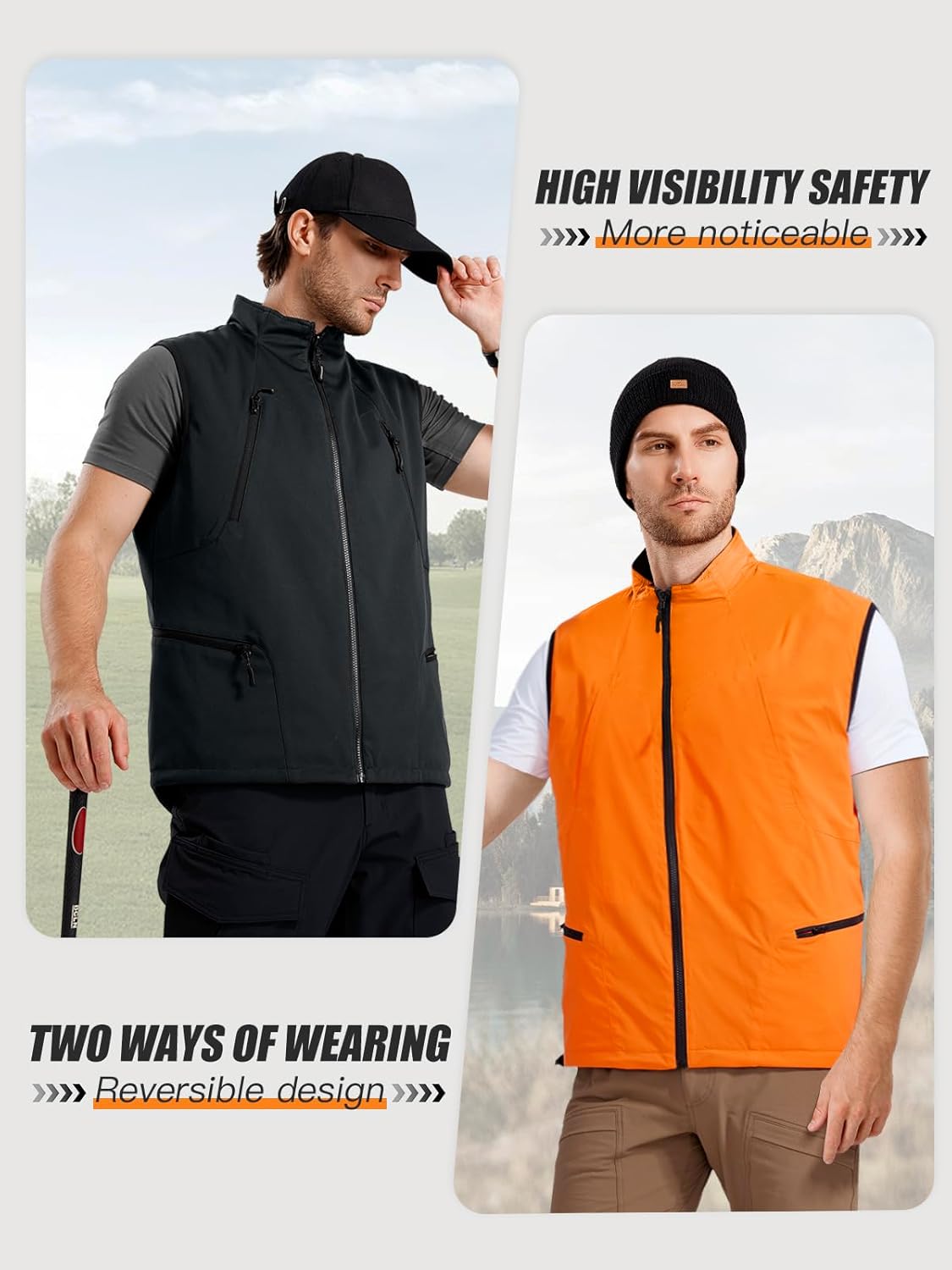 Reversible Design: This fleece-lined softshell vest offers the versatility of two different looks in one, you can switch up your style effortlessly. We design the other side with black and orange color for your choice. If you are going out for some adventure activities, you can choose orange,high visibility safety vest, which can make you more noticeable when hunting or other occasions, so that you and your friends can be conspicuous and easily identified