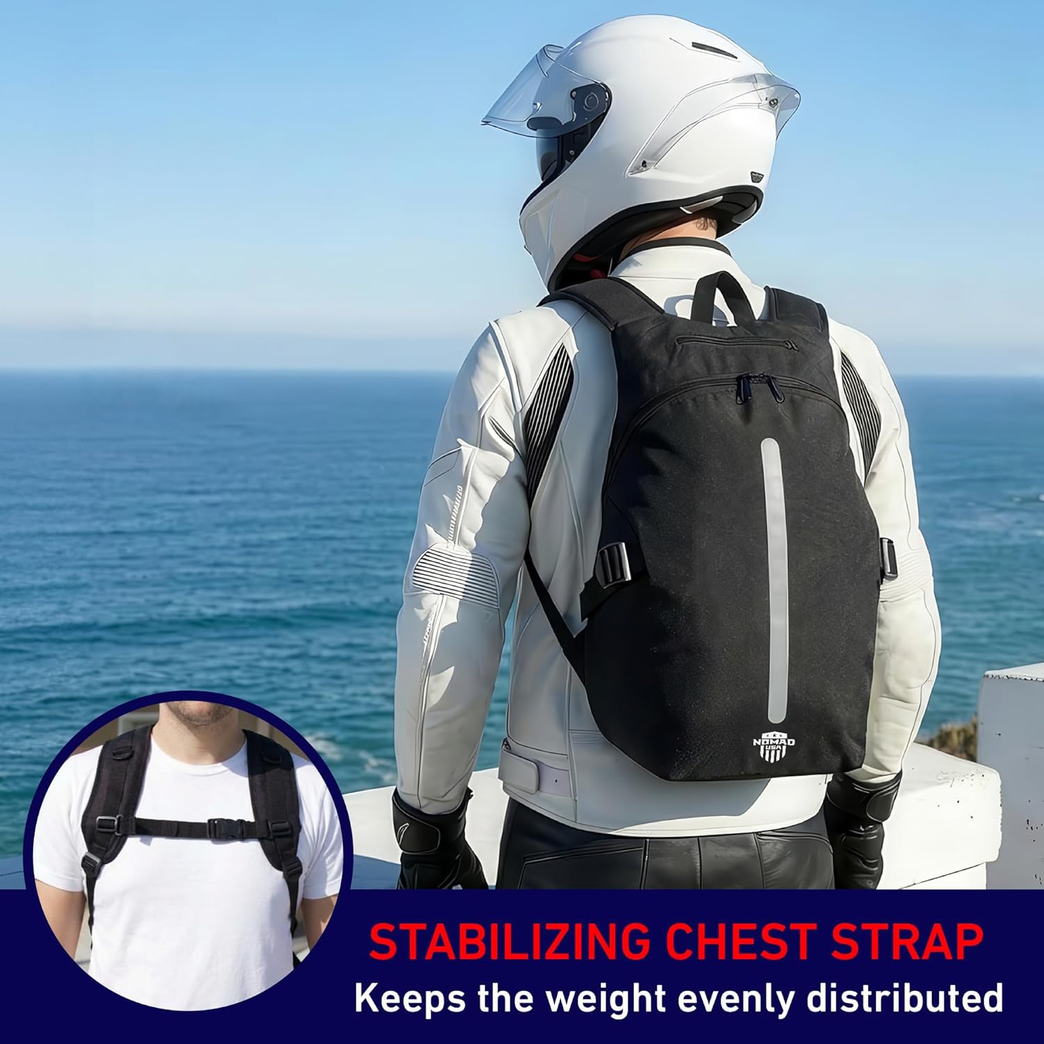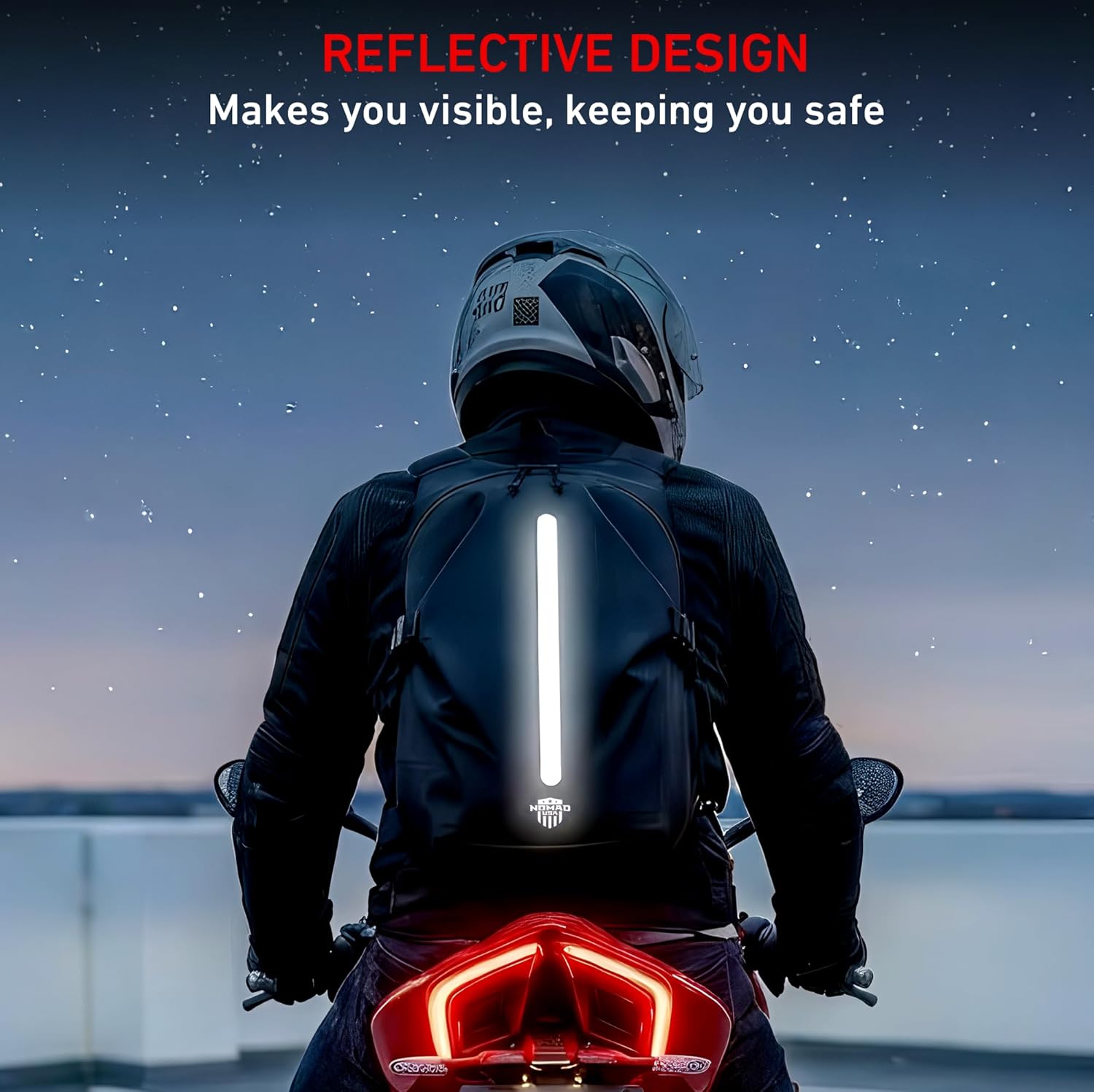 Improved Visibility and Safety: This motorcycle backpack by Nomad USA ensures you don’t need extra reflectors on your bike to remain visible during the ride. These bags come with high reflective elements for maximum road safety, especially while riding in the dark or in low-light riding conditions. You are highly visible to car and truck drivers, motorcycle riders, and other road users at any time of day.