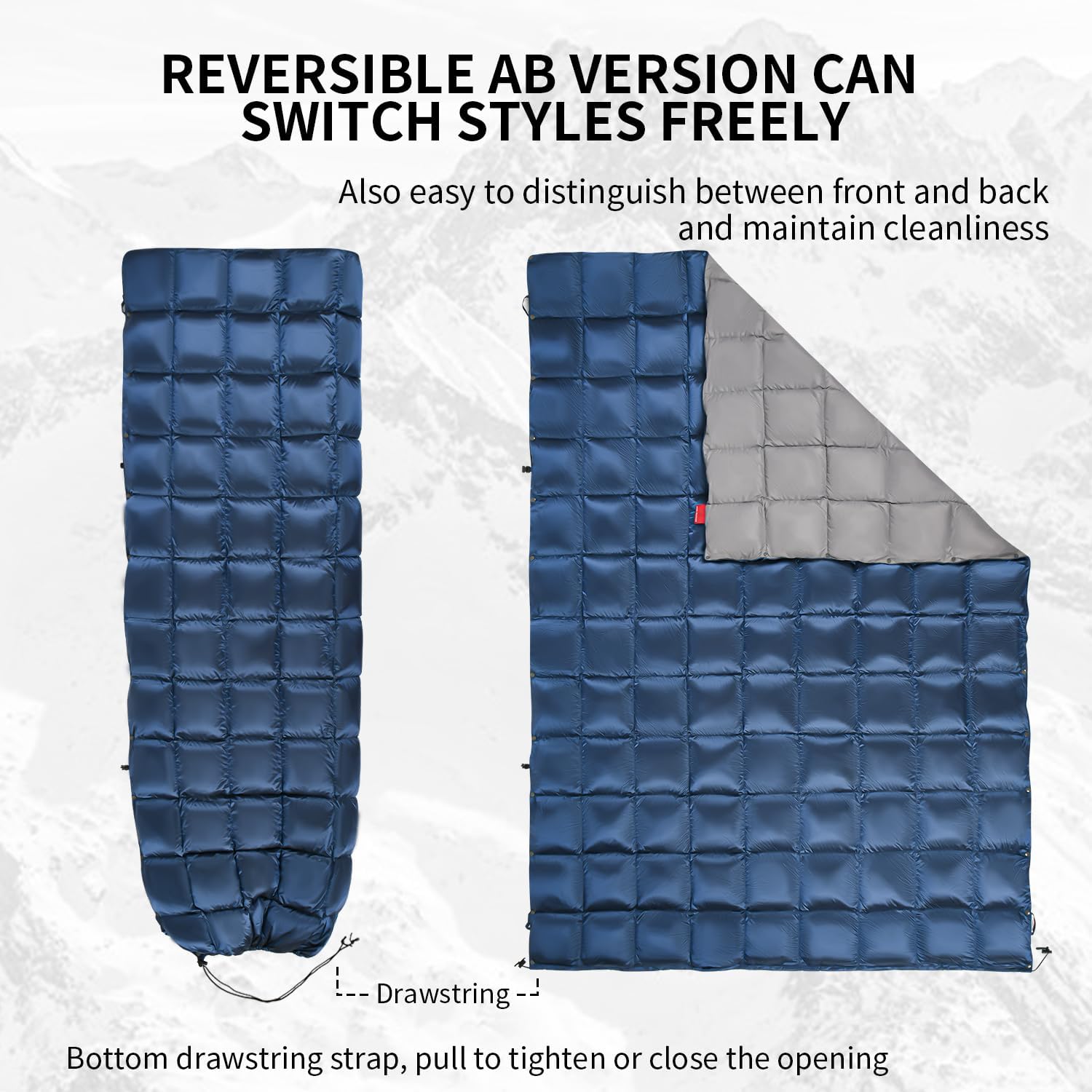 【Your Ultimate Outdoor Companion for Unmatched Warmth】Engineered for rugged camping trips, serene backpacking adventures, and chilly festival nights, this puffy down blanket camping is your go-to shelter from the cold. It’s the perfect sleeping quilt replacement for your camping sleep system and a ideal gifts for any cold-weather camping gear list.