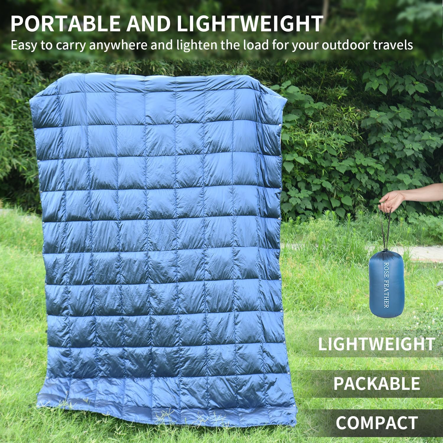 【Versatile All-Season Camping & Backpacking Blanket】Experience the ultimate 3-in-1 outdoor essential that functions as a warm down camping blanket, a cozy sleeping bag alternative, and a wearable poncho. Its lightweight and packable design makes it your go-to insulated camping blanket for hiking, beach outings, festivals, stadium events, and even as a comfortable travel blanket for airplanes and picnics