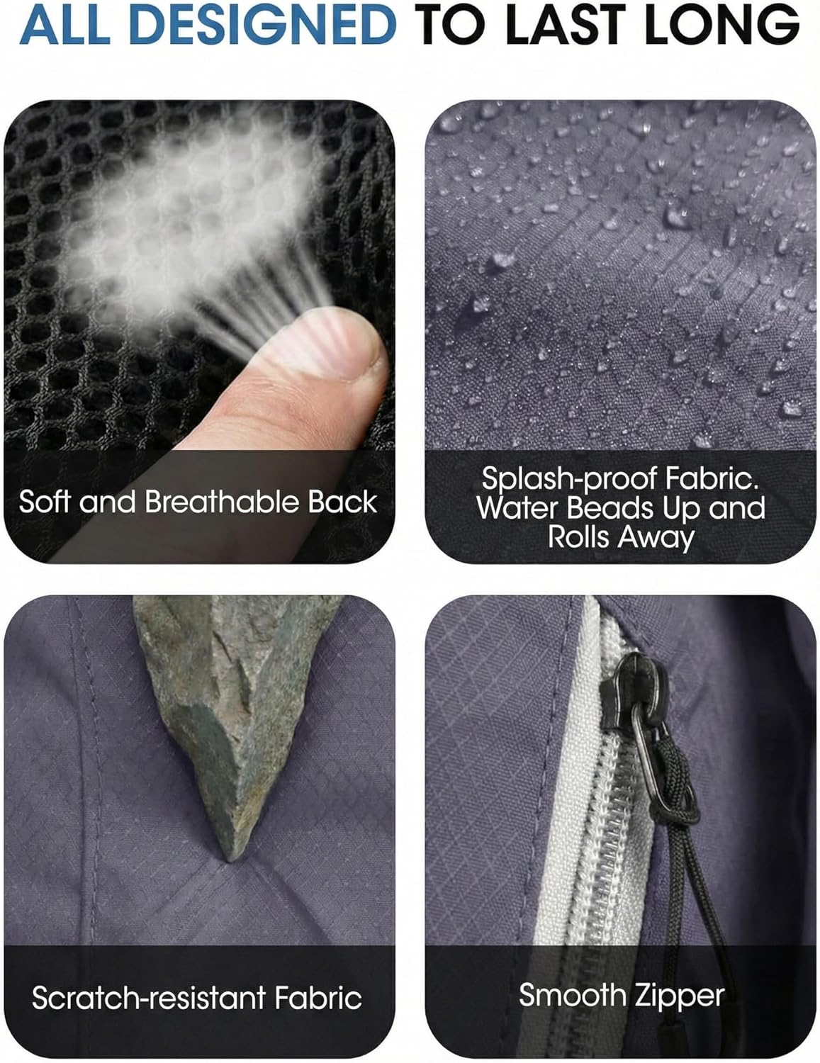 THICKER, TOUGHER 300D FABRIC for durable foldable backpack – Most foldable backpacks feel like thin plastic; ours feels like real gear. The high-density nylon backpack resists scratches from rocks and repels water instantly. Accidental coffee spill? Just wipe it off – it’s stain-proof and dries fast, keeping your lightweight backpack looking clean and professional for all outdoor use