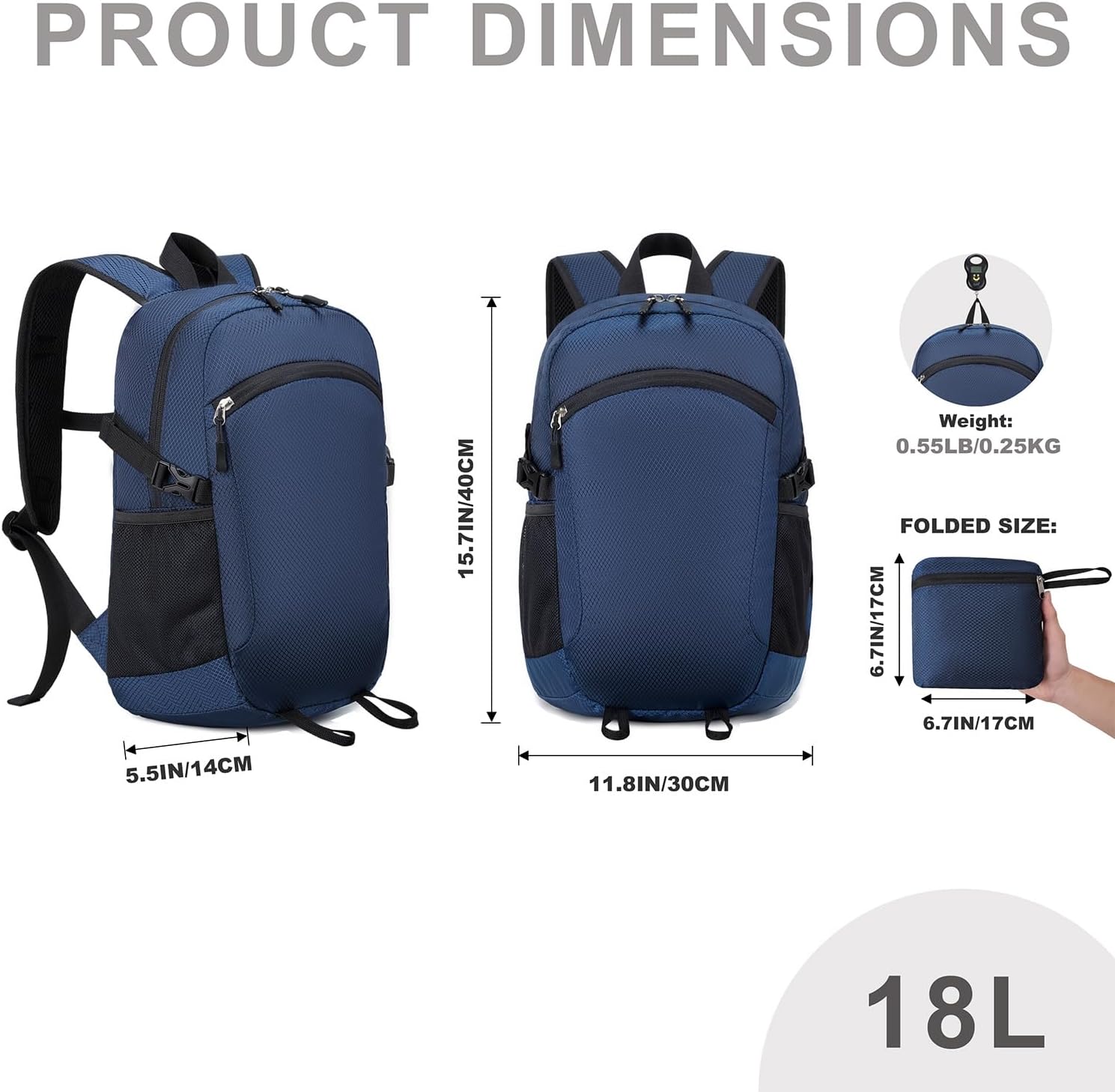 Two Sizes for Everyday Travel – Choose Small 18L for light day trips or Large 30L for extended day use and short getaways. Designed for lightweight travel, both sizes fold into a compact pouch for easy storage in luggage or handbags.