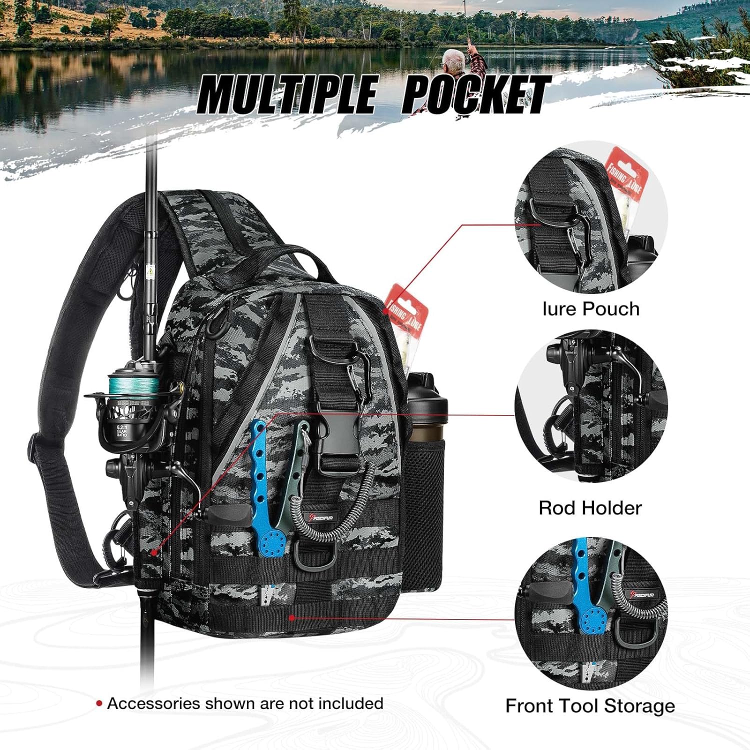 Piscifun Multipurpose Fishing Tackle Backpack with Rod & Gear Holders