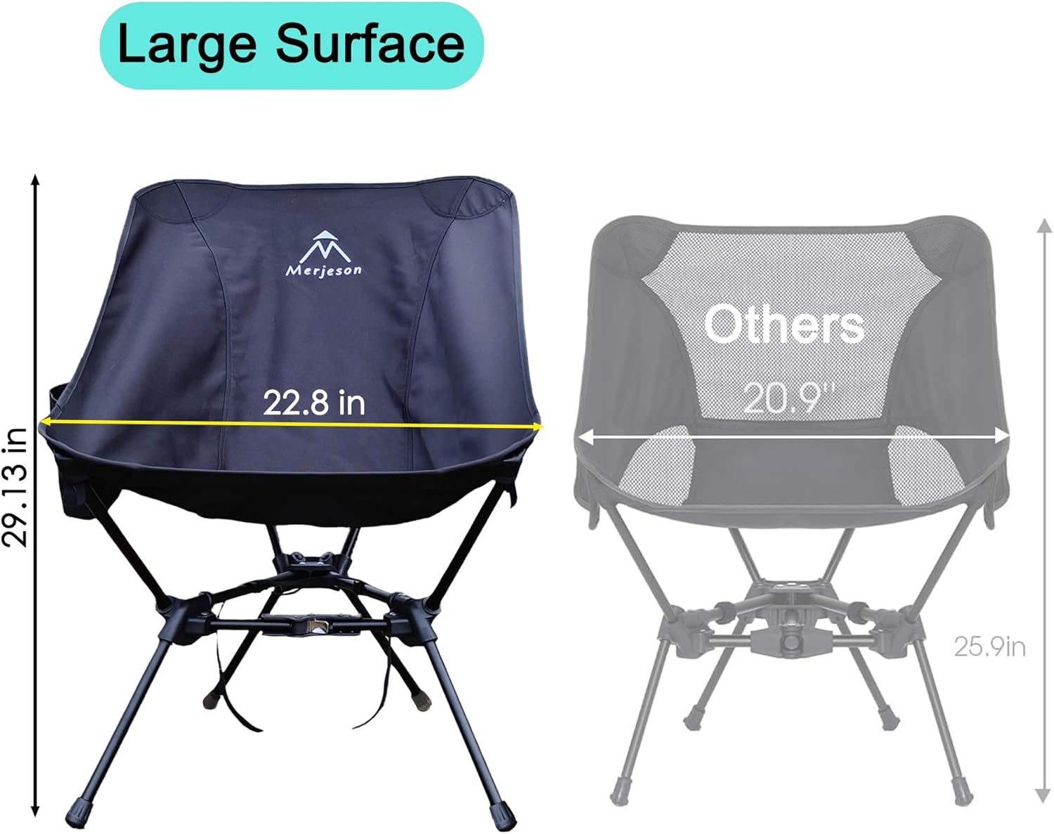 【Stable Triangle Structure】: Enjoy steady seating—Merjeson’s camping chair is made with sturdy and High strength aluminum alloy, holding up to 330lb/150kg. Seat fabric is heavy-duty 900D polyester of durability and dirt/water/scratch resistance