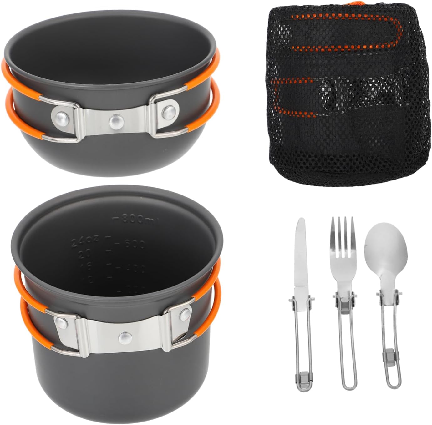 -Material: Stainless steel, hard aluminum alumina camping cooking supplies.