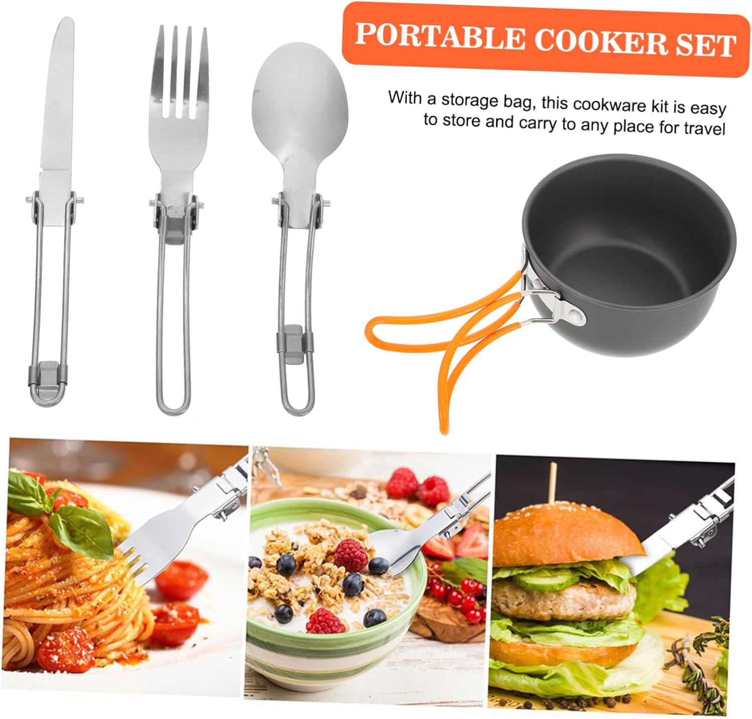 1 x pot 1 x cutter 1 x fork 1 x spoon 1 x storage bag