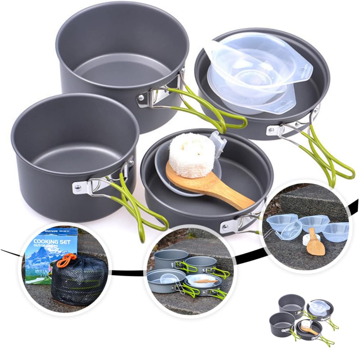 Backpacking Cookware Portable to carry and bring much convenience to you.Cooking Pot Are you still looking for a kit? If so, our mess kit is carefully prepared for you.Camping Accessories With this complete cookware set, you will enjoy a pleasant and tasteful meal time with your friends and family