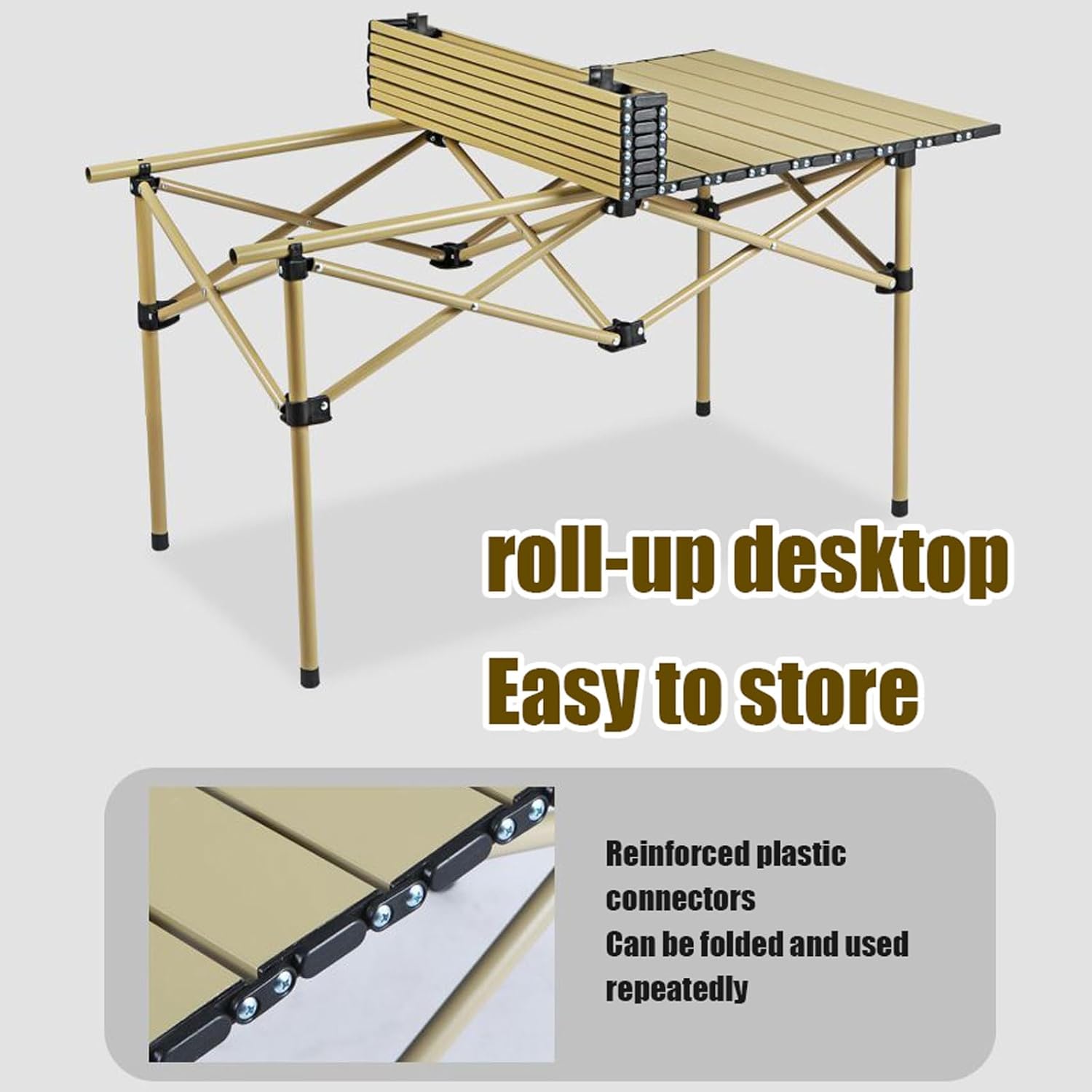 【Sturdy and Reliable】Compact camping table is crafted with reinforced carbon steel, with thickened and enlarged foot caps,ensuring unwavering sturdiness and durability.The non-slip matte finish of the portable rolltop table keeps your cups and items securely in place.