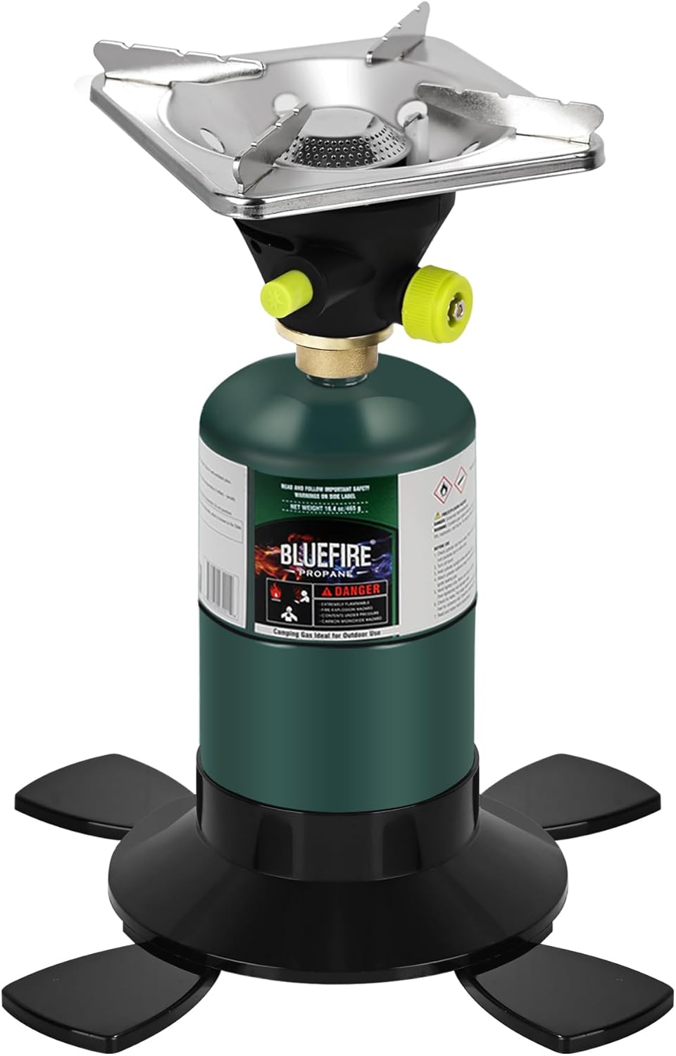 Engineered for simplicity and efficiency. One-click ignition means no more fumbling with matches or lighters. Just a simple press. This propane stove heats up in seconds, delivering instant heat for those hungry moments after a long hike. The durable construction and robust materials mean this hiking stove is built to last. Fuel efficiency is at the heart of our portable gas stove. Engineered to save propane or MAPP gas. Our camping stove’s stable base and secure support for pots up to 5 lbs ensure safe, steady cooking even on rocky ground or uneven surfaces.