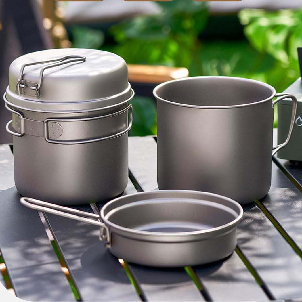 【Ultra-lightweight and Sturdy】This Cooking Pot and Frying Pan is made of High-quality 99.8% titanium, lightweight and robust metal. High hardness, never gets rust, corrosion/heat resistance, and fantastic heat transfer.