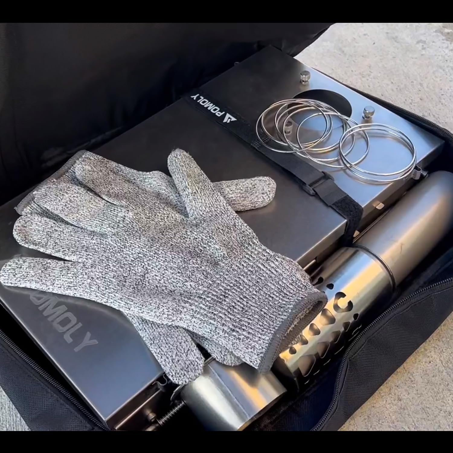 Ti 0.6 Titanium StoveStainless Steel Spark ArrestorTitanium Smoke Damper Base9.84ft/3m Titanium ChimneyChimney RingsCut Resistant GlovesStove Bag