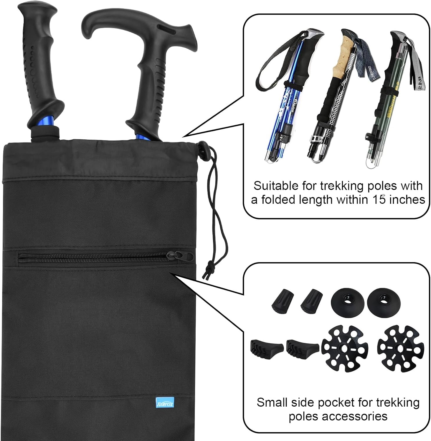 Opening: Wide opening to easily store your hiking poles. Drawstring closure design make it quickly and smoothly to get your trekking poles inside and out.