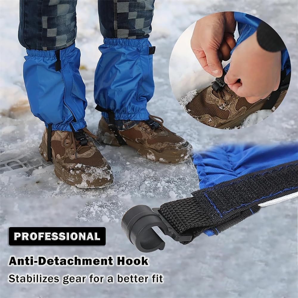PRACTICAL DESIGN – Top elastic band helps the hiking gators hug your legs more firmly and not allow snow or sand to get into it. The snow gaiters cover your ankle and wrap shoes completely that can also be used as a mudguard. And the bottom strap is durable, designed to lock your shoes more firmly.