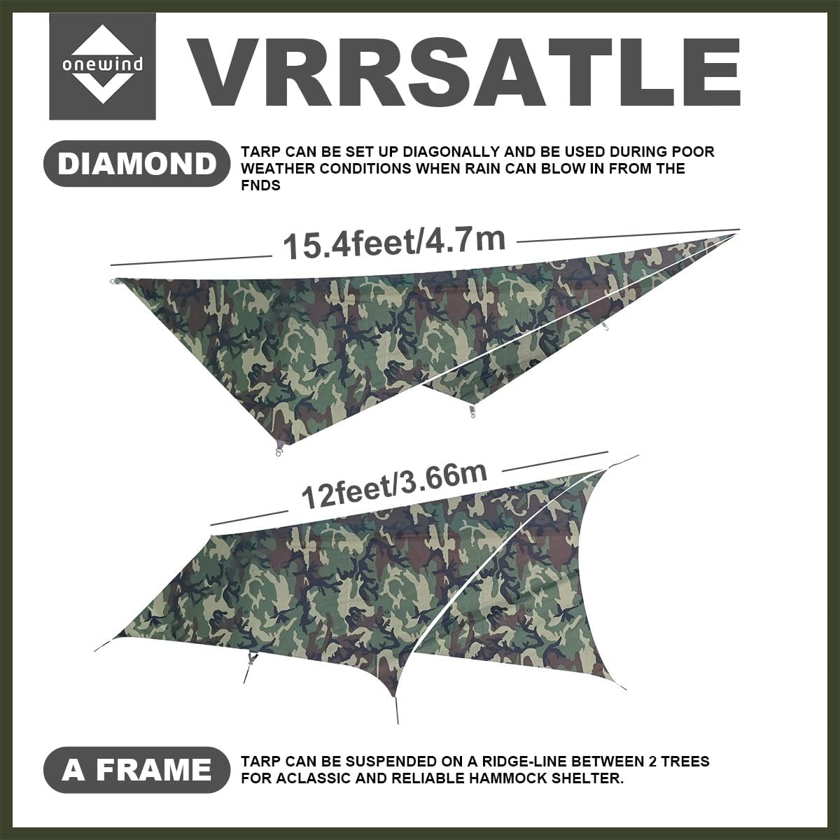 ULTIMATE HYBRID TARP. Whether you need a home for your backcountry campsite or a place to stash your camping gears from prying eyes, a camouflage tarp is a lifesaver. Our Onewind Camouflage Tarp features a woodland camo design that is the perfect tarping solution in the bush or in the wild. It helps you build different kinds of emergency shelters that blends well into the surrounding landscape.