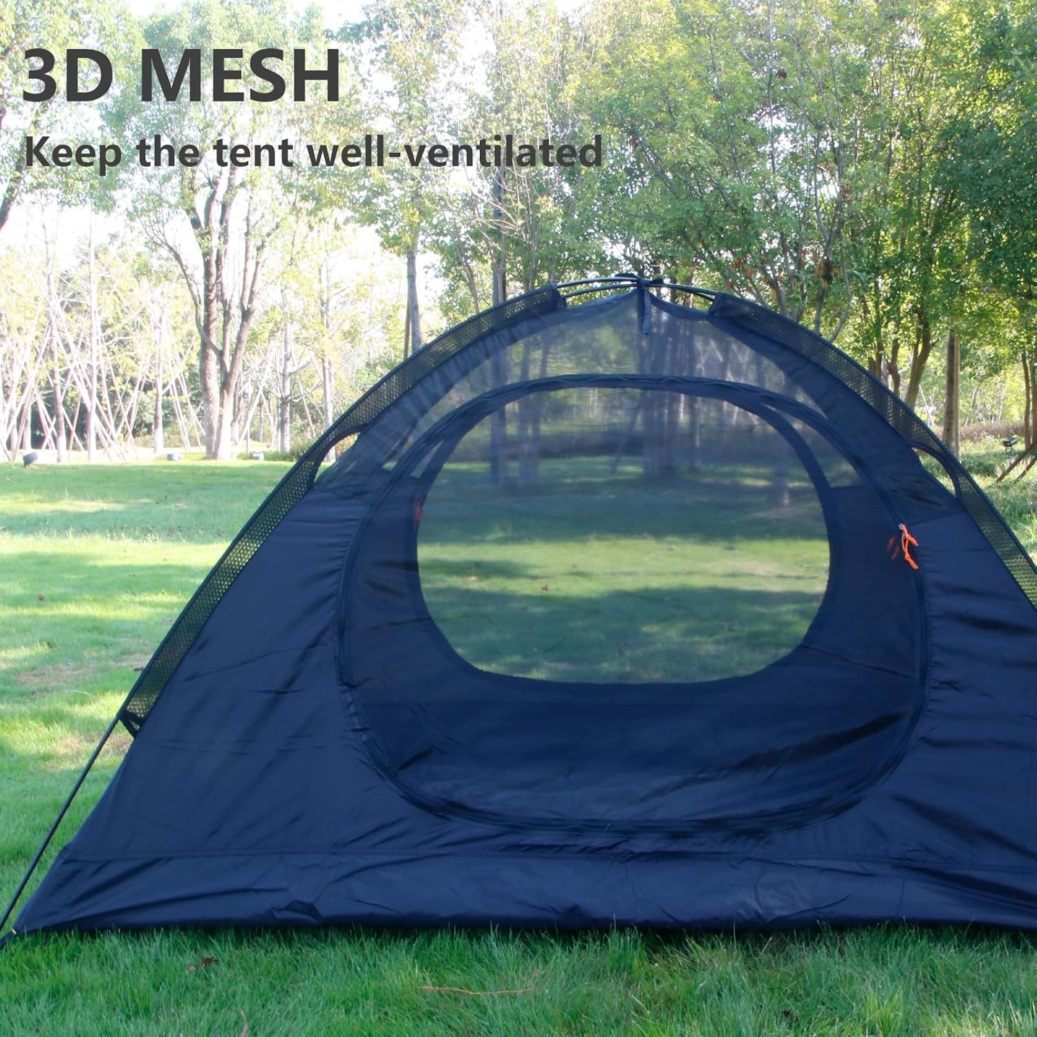 【Breathable and stable】 : Our ultralight camping tents large cross-section mesh material and 2 D-shaped doors with double zippers and 2 triangular mesh Windows. The mesh door and window design provides a good view and ventilation. High-strength fabric can also maintain the stability and windproof performance of the tent.
