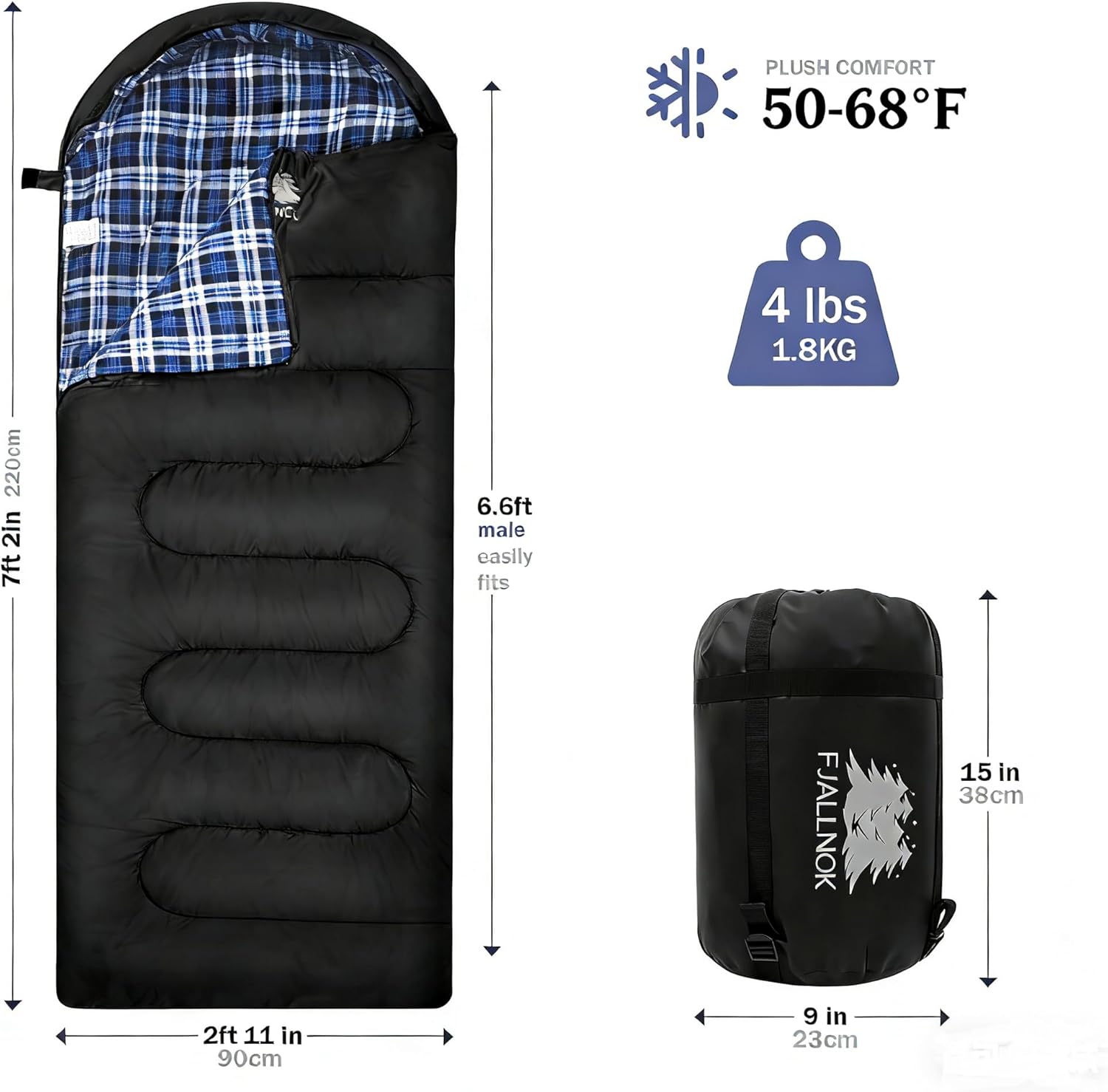 FJALLNOK sleeping bags are made by high quality Polyester and cotton flannel materials, which is comfortable and durable for your outdoor exploration.