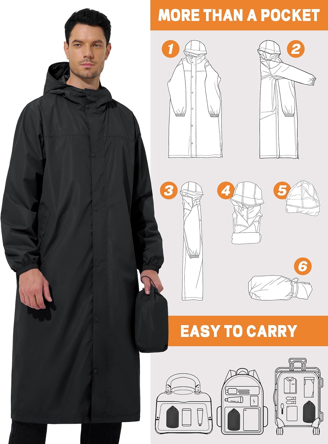 Long-Length Multi-Function Design – Designed as a long rain coat, it can also be used as a mens Rain Poncho or laid flat on the ground as a camping ground cloth, making it ideal for hiking, camping, picnics, and watching outdoor sporting events.