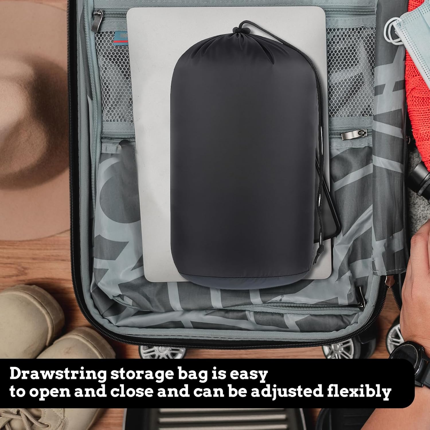 Versatile Storage: Perfect for storing clothing, blankets, sleeping bags, and more, these sleeping bag storage sacks are ideal for camping, hiking, backpacking, and traveling, keeping your gear organized and easily accessible.
