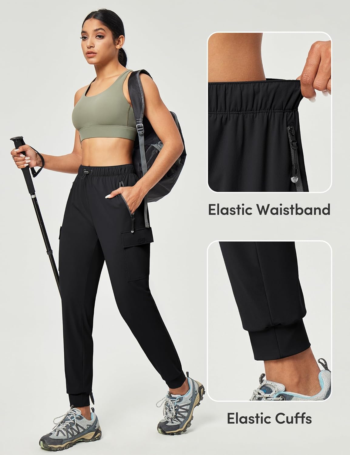 UPF 50+ sun protection to shield you from harmful UV rays in our cargo joggers for women.
