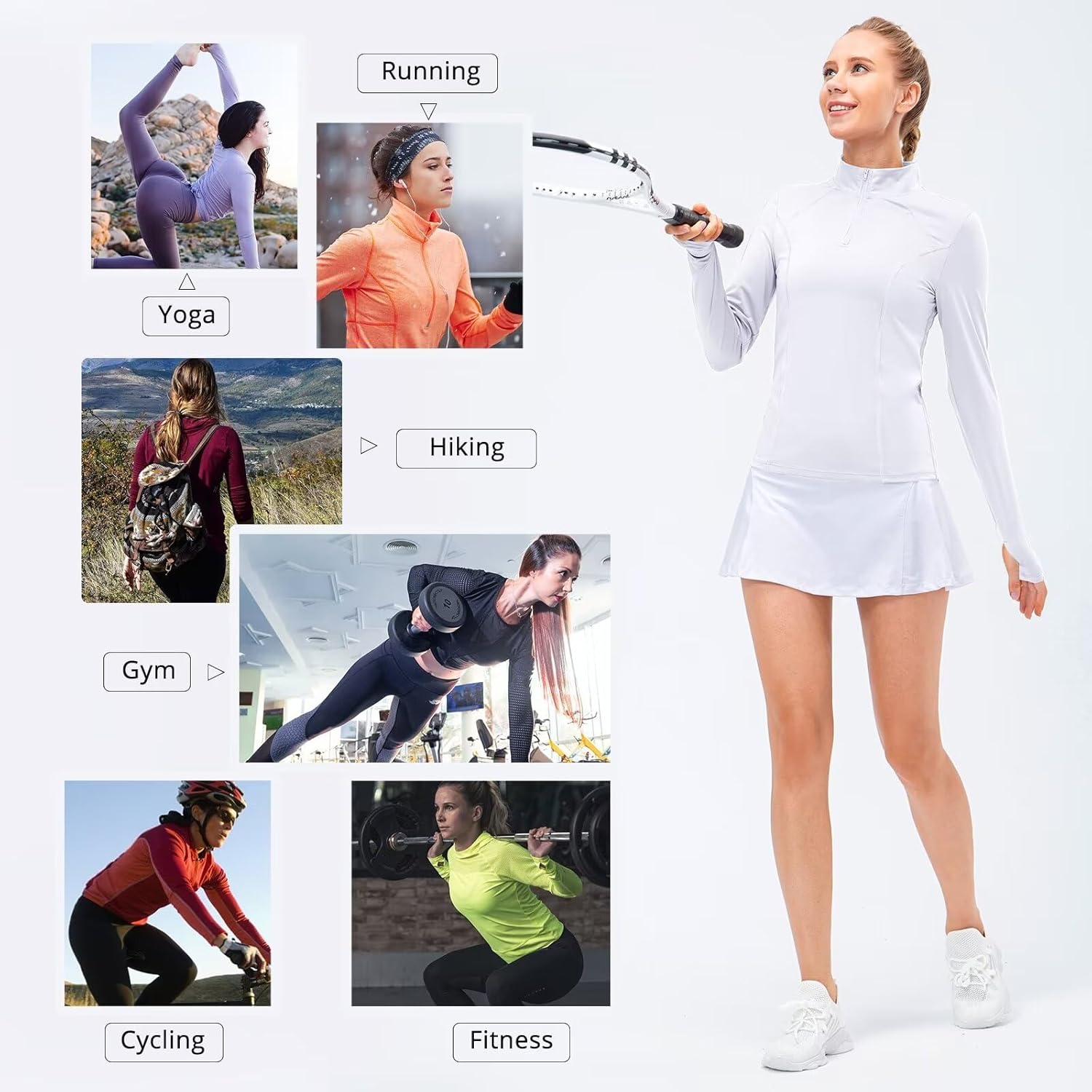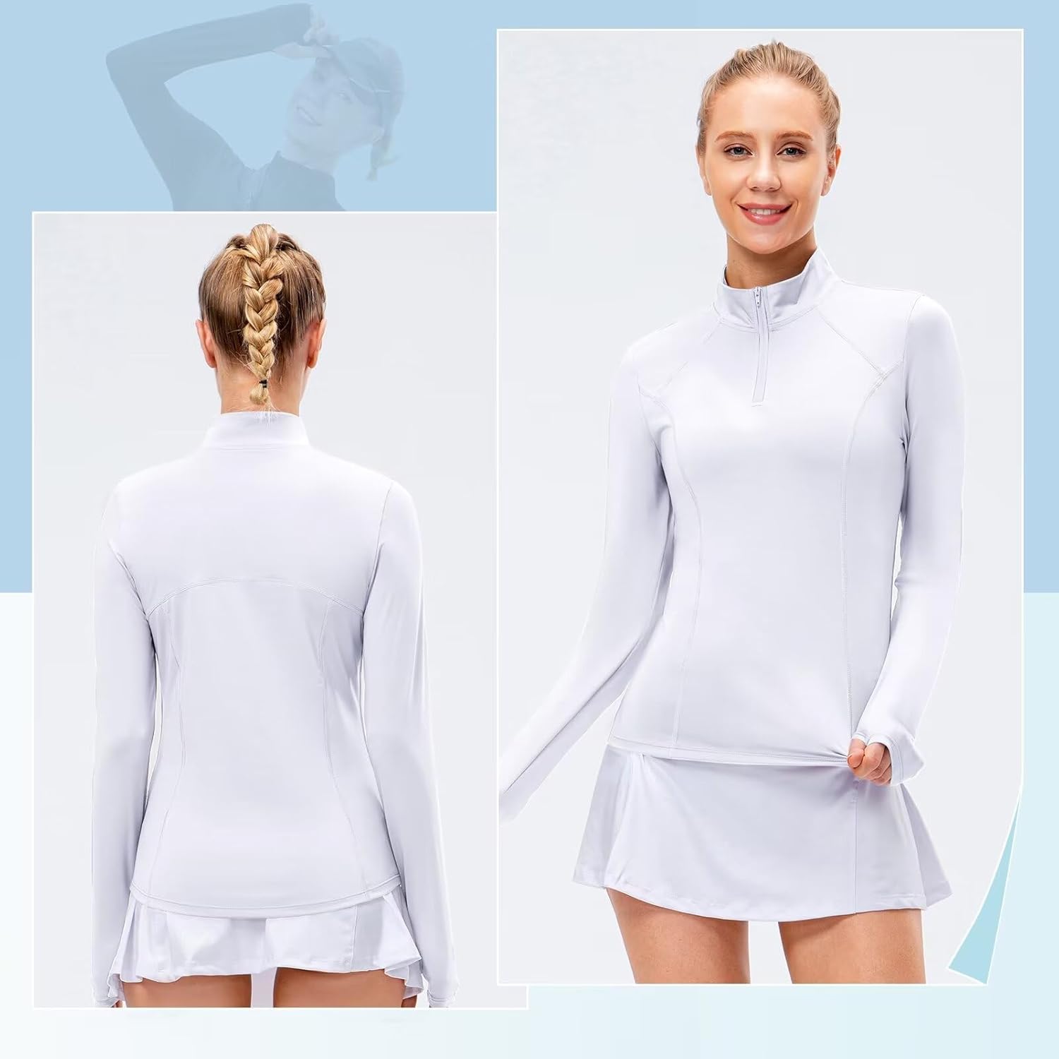 1/4 zipper and stand-up collar for an effective wrap for sun protection and easy on/off.