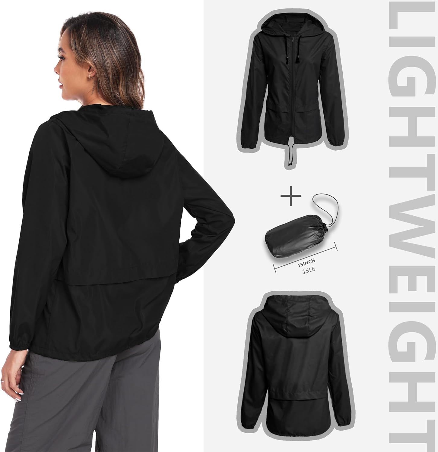 Packable Rain Jacket Women Waterproof Lightweight Raincoat with Hood for Hiking Outdoor Travel
