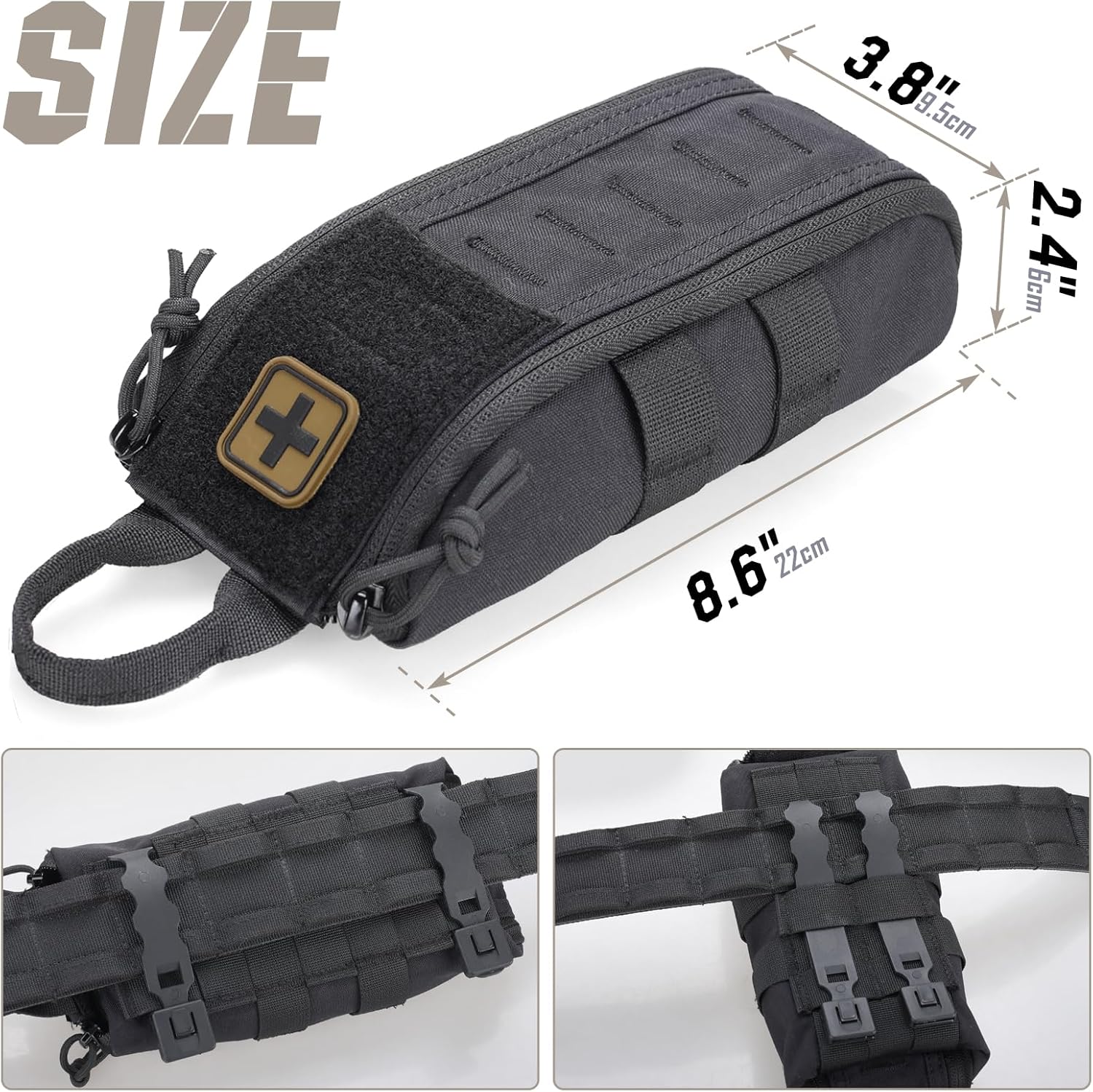 TOUGH & MOISTURE RESISTANT: Trauma Bag is made of 500D water/ abrasion-resistant nylon fabric, and YKK zippers are lightweight and sturdy. MOLLE Pouches protects your medical supplies from getting wet and is built to last even in hostile situations. EMT Bag with a morale loop patch panel and a cross patch is included.
