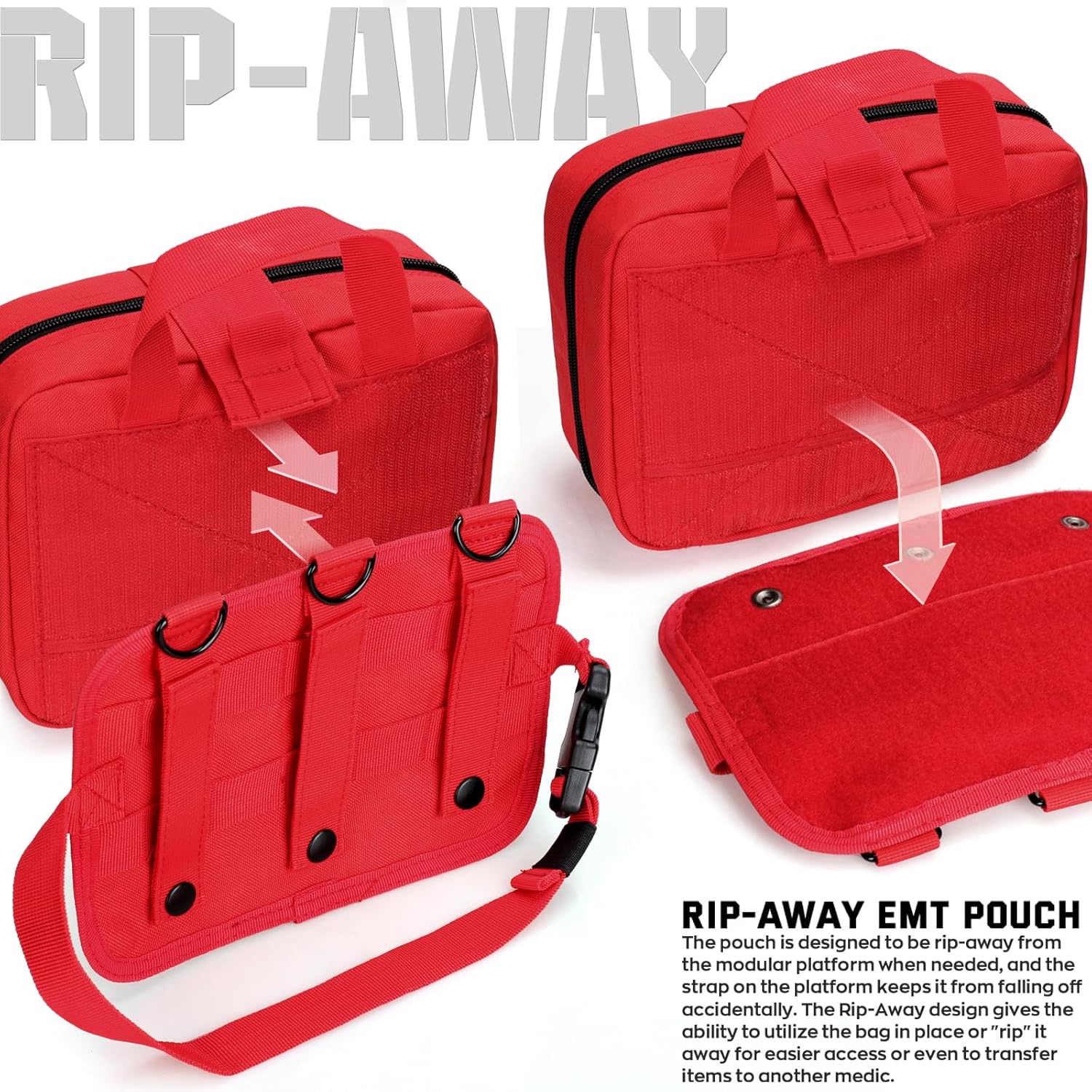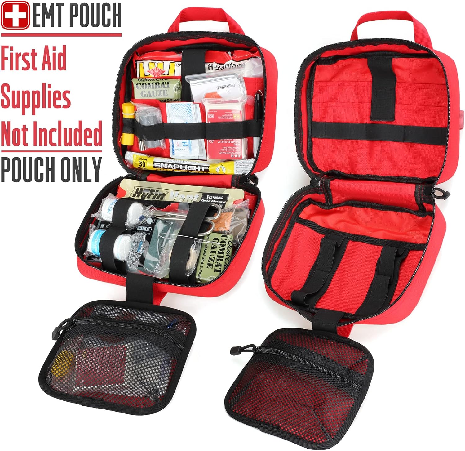 QUICK RELEASE : Hook & Loop rear panel and wide handle allow quick access to EMT Bag, greatly saving first aid time for camping, hiking, hunting, adventure, cycling. First Aid Kit Bag works as Versatile Molle Accessories for on the go.