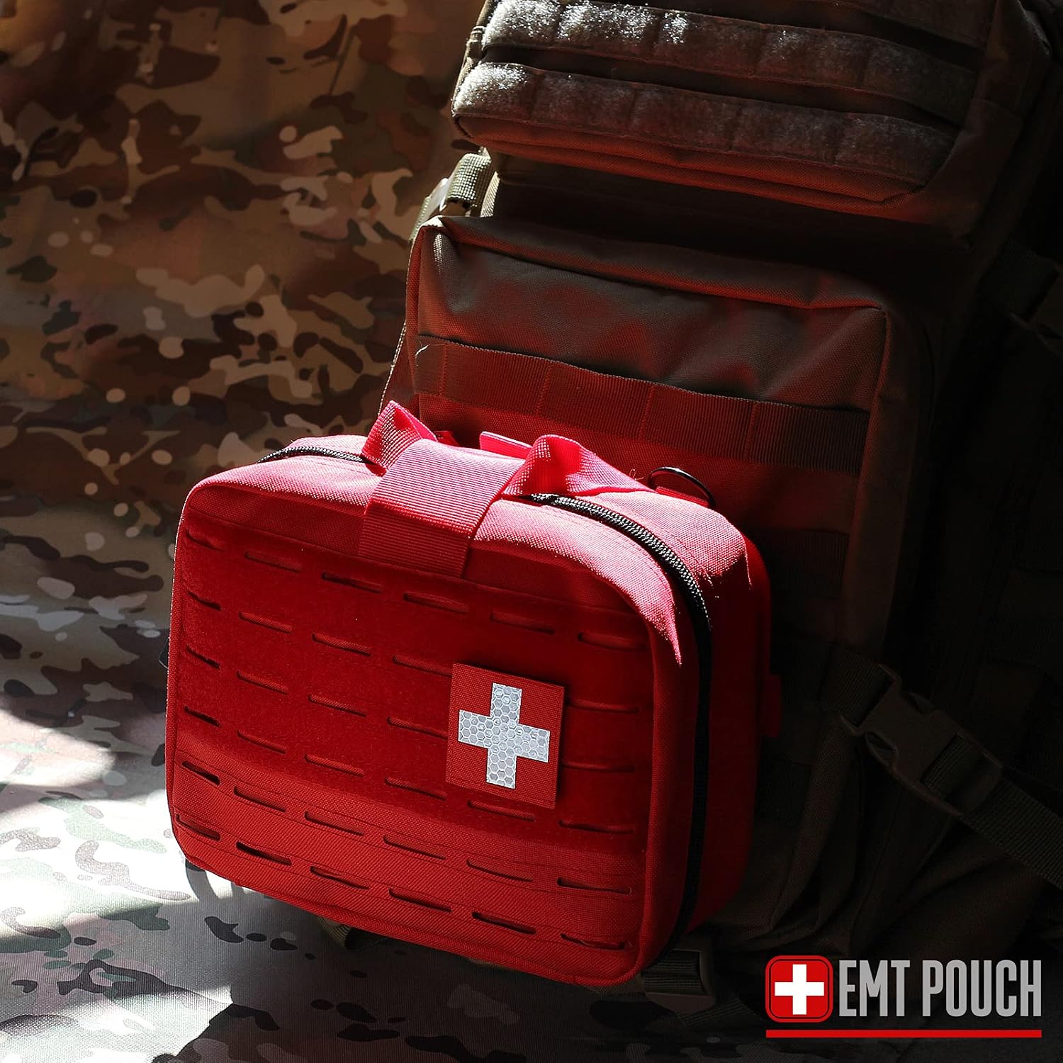 QUICK RELEASE : Hook & Loop rear panel and wide handle allow quick access to EMT Bag, greatly saving first aid time for camping, hiking, hunting, adventure, cycling. First Aid Kit Bag works as Versatile Molle Accessories for on the go.
