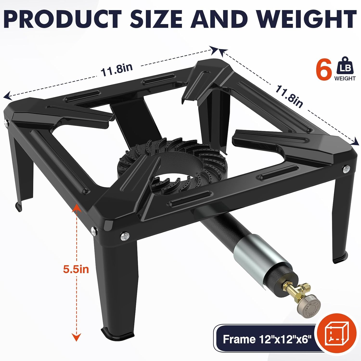 SAFE, STABLE & USER-FRIENDLY: Designed with a wide, stable base to prevent tipping and ensuring a secure cooking surface on uneven terrain. This Propane Burner is easy to operate for beginners and pros alike, providing peace of mind while you prepare delicious meals in the great outdoors.