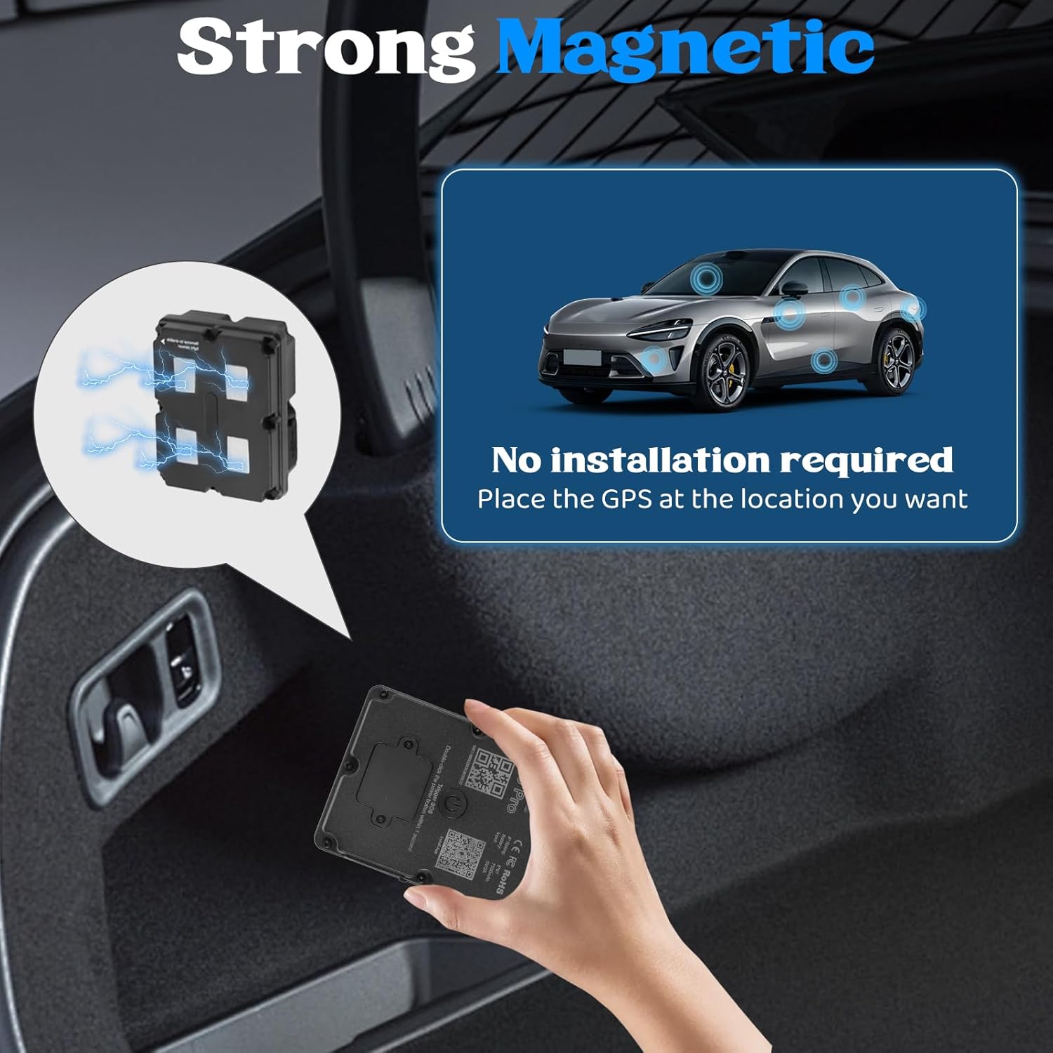 【Super-Strong Magnet & IP67 Waterproof】Engineered with a powerful square magnet, our car gps tracker stays securely attached to any metal surface—inside vehicles, on machinery, or behind equipment. Its robust magnetic base holds firm even during movement, offering discreet and reliable tracking wherever you place it. Fully IP67 waterproof for added durability.