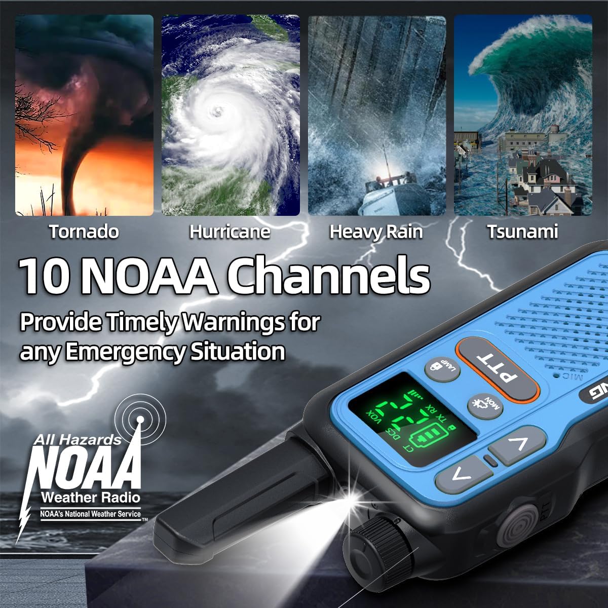 NOAA Weather Receiver: Predicts severe weather conditions (e.g., hurricanes, tornadoes, storms, etc.) ahead of time to help you prepare for disasters and hazards. It can also be used as an emergency radio Survival Gear supplies during extreme weather conditions when cell phone signals are down! (Note: If NOAA channels are unavailable, program them via programming software)