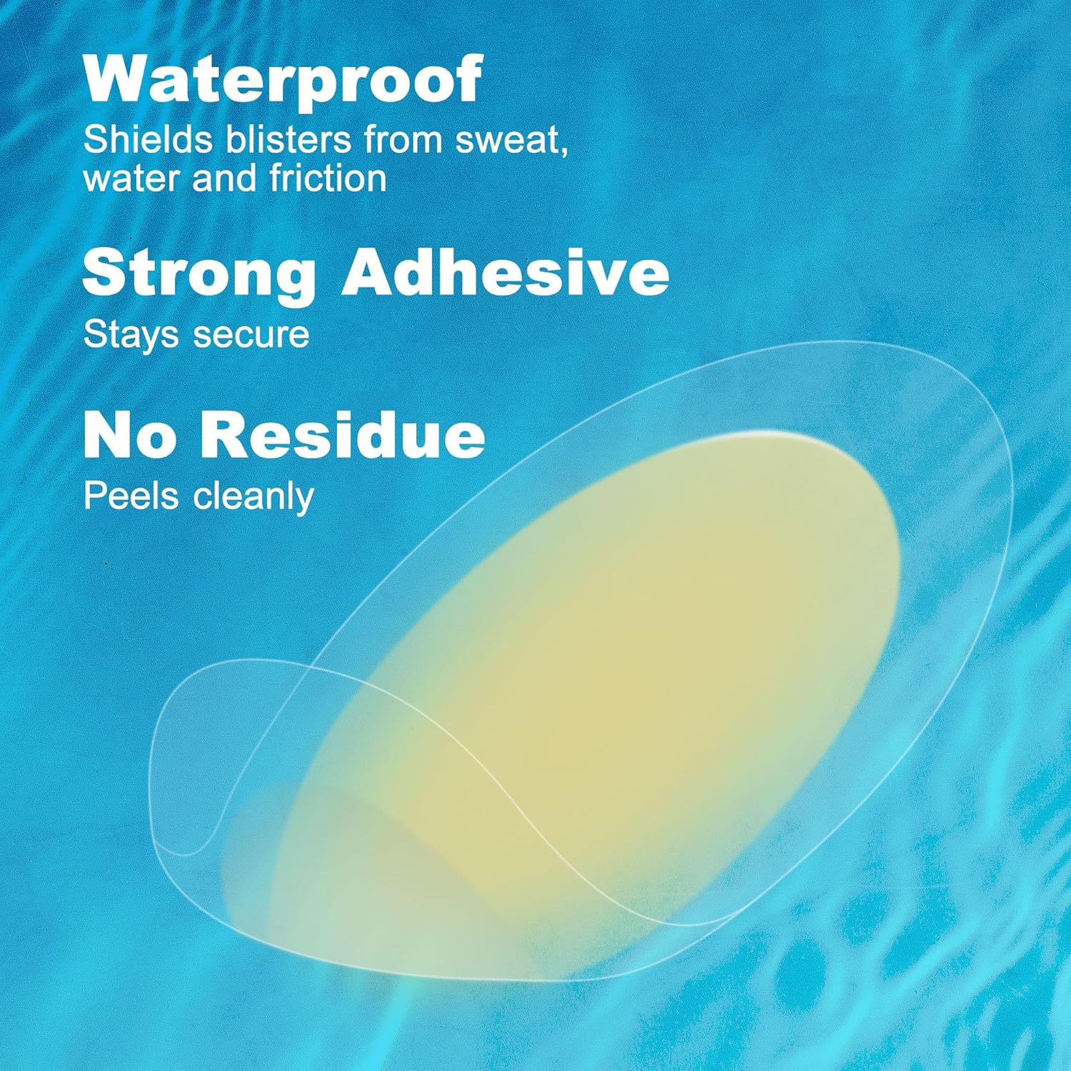 WATERPROOF PROTECTION: Blister patches are made with anti-sensitive hydrocolloid gel to absorb fluid and shield blisters from sweat, water, and additional friction; Can be worn while swimming or showering without worries of slippage even during hot summer months; Latex-free; Skin friendly; Lightweight