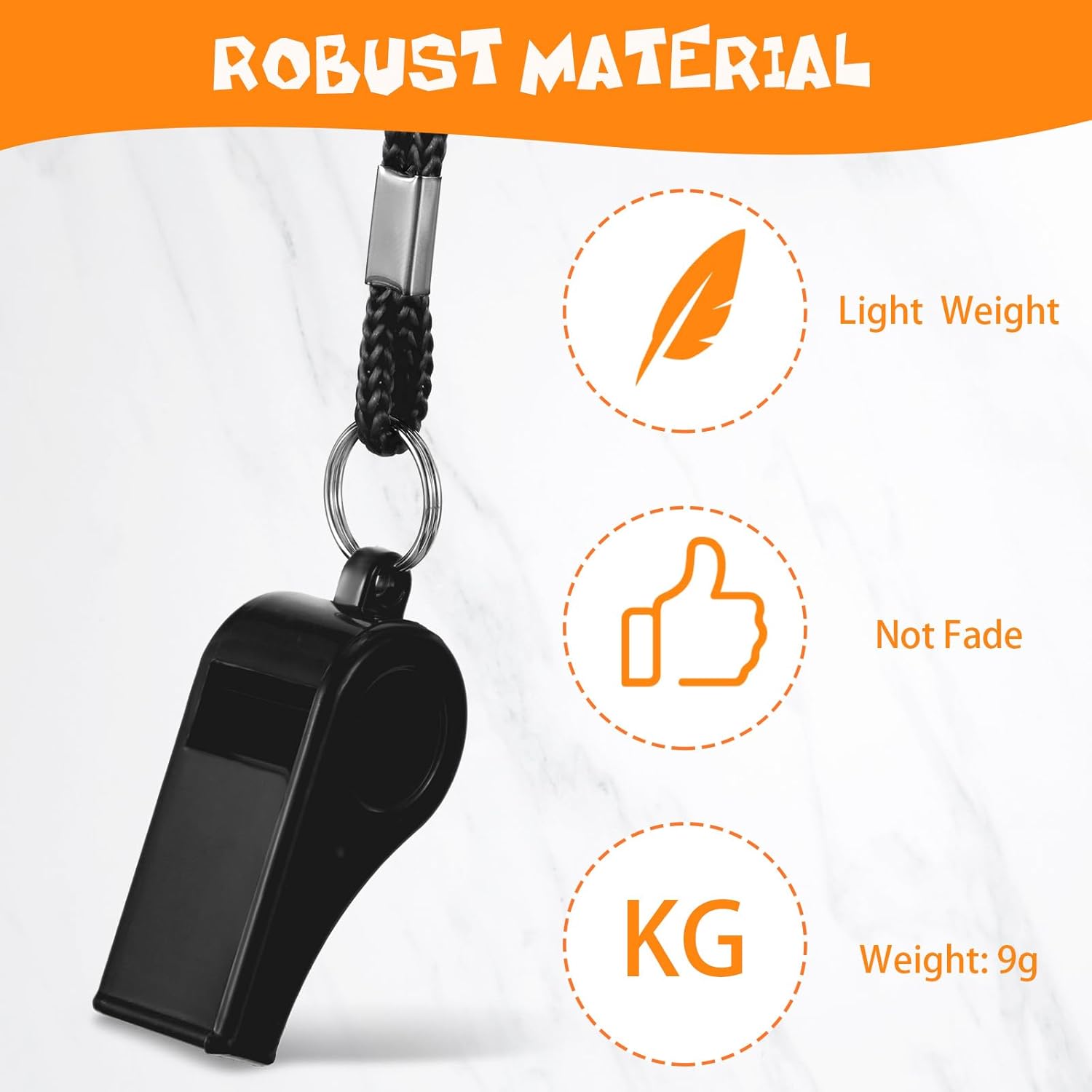 Wide Range of Application: the plastic whistles with lanyard can make high pitched sound, ideal for camping, hiking, hunting, backpacking, fishing, swimming, boating, kayaking, marine sporting events, and also pet training