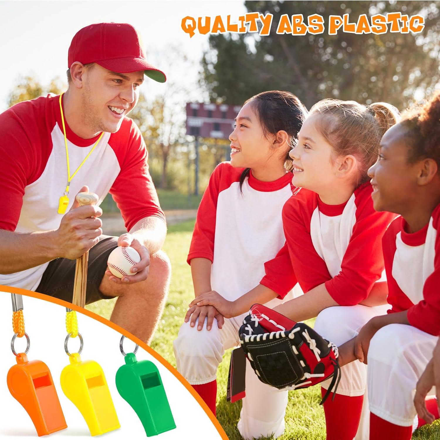 Sufficient Quantity: the package comes with 100 pieces of plastic whistles with lanyard in orange, yellow, green, red and black color, which are easy to be noticed, and very suitable for lifeguard, self defense and emergency
