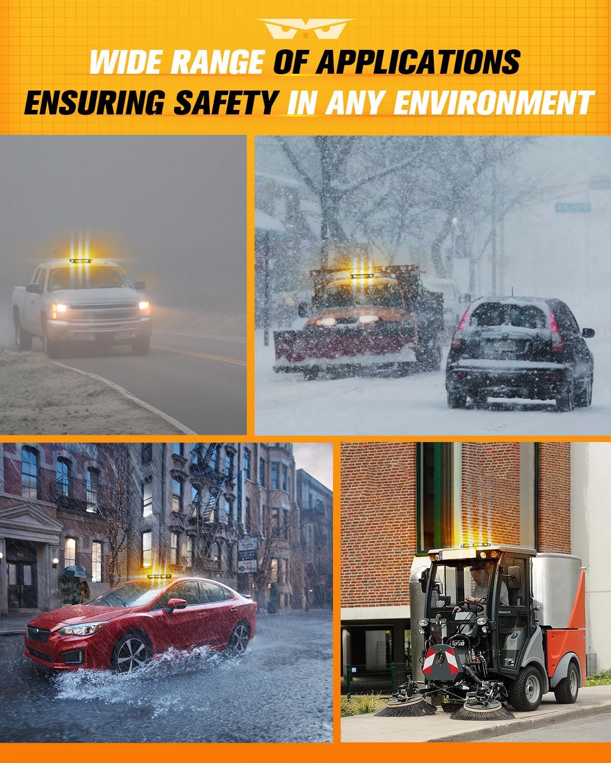LOW PROFILE DESIGN – Crafted with durable ABS housing, this rooftop amber light bar is built to withstand harsh weather conditions and is dustproof for lasting performance. The clear PS lens enhances light transmission, maximizing the effectiveness of the strobe flashing patterns, perfect for use as construction lights and caution lights in work zones or during traffic control.