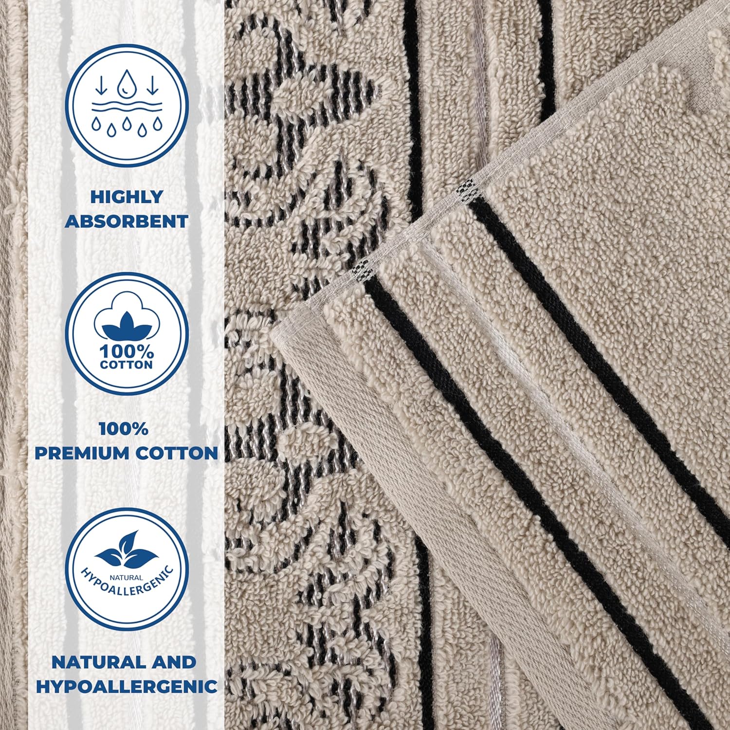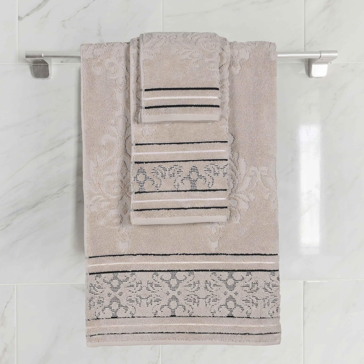 πππππ?π ππππππ: Each towel is finished with a jacquard, floral motif for added style and elegance; excite any master bath, powder room, or guest bathroom with this beautiful bundle; hanging loop allows you to easily hang each towel