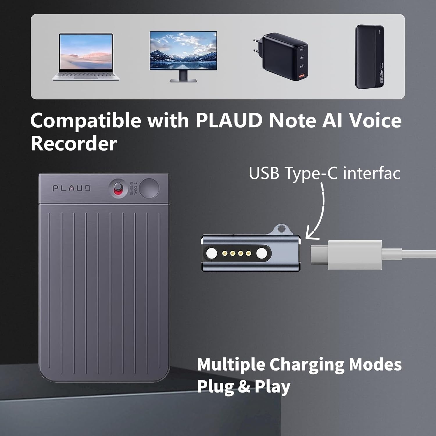 【Strong Magnetic Charging】 Build-in pure copper probe, this USB charging cable comes with solid magnetic power.It can fast automatic adsorb the electronic devices to charge.Upgraded magnet enhancements the charger’s efficiency and speed. The magnetic design also won’t damage your PLAUD Note AI Voice Recorder.