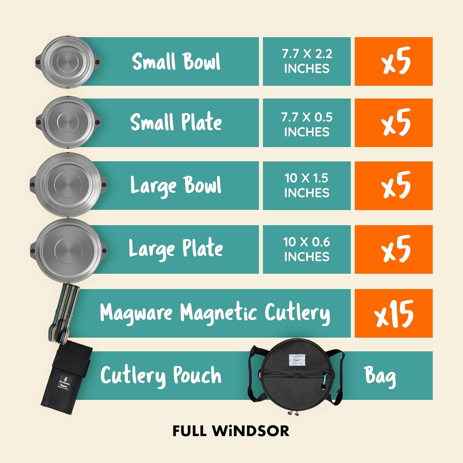 Camping Dish Set: A 35-piece stainless steel dinnerware set includes everything you and the kids need for outdoor dining, including plates, bowls, cups, utensils, and a convenient carrying bag. Perfect for camping, backpacking, hike, trips, & more.