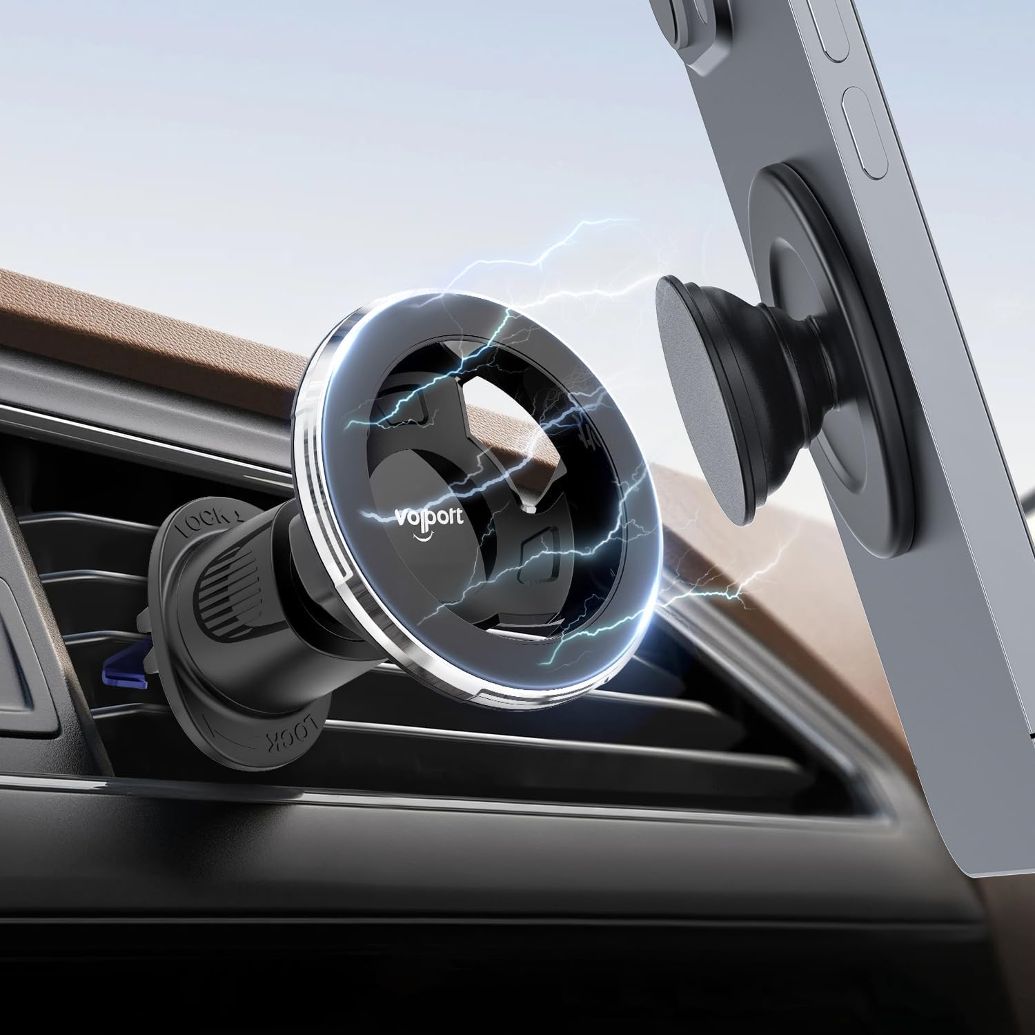 [Magsafe-compatible ] : The powerful military grade dual magnets mount your phone with the Volport for magsafe 3 car mount non charging, securely attach cellphone to your wide air slot, keeping it within easy reach for charing or listening to music. Driver never worry about smartphone dropping even taking sharp turns, sudden stops or driving on cobblestone, travel safely. ( Note: won’t support wireless charging )
