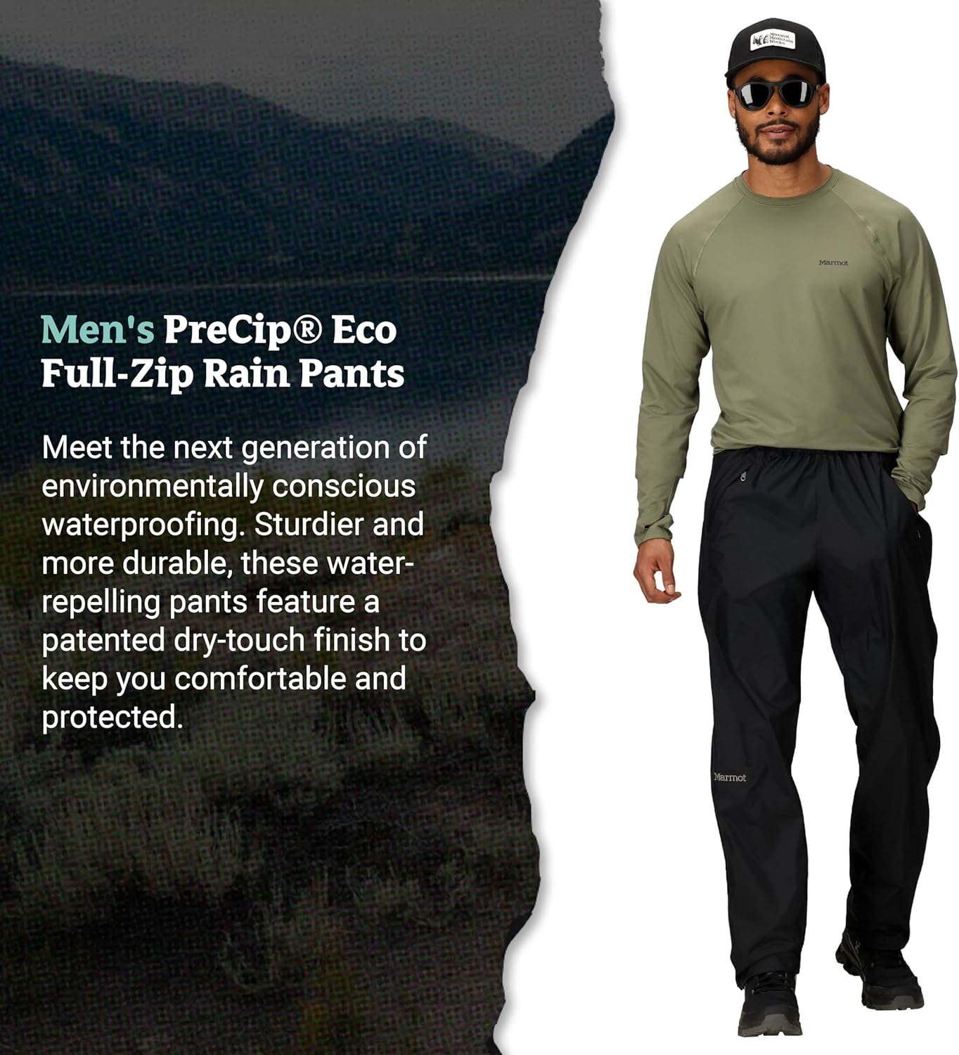 Stay Comfortable and Dry – Designed for adventure even in rain, the PreCip Eco Full Zip Pant is durable and designed with fully waterproof and breathable PFC-free DWR Marmot NanoPro nylon ripstop fabric with fully sealed seams, perfect rain pants for men whether jogging, hiking, golfing, or just to add to your best backpacking gear