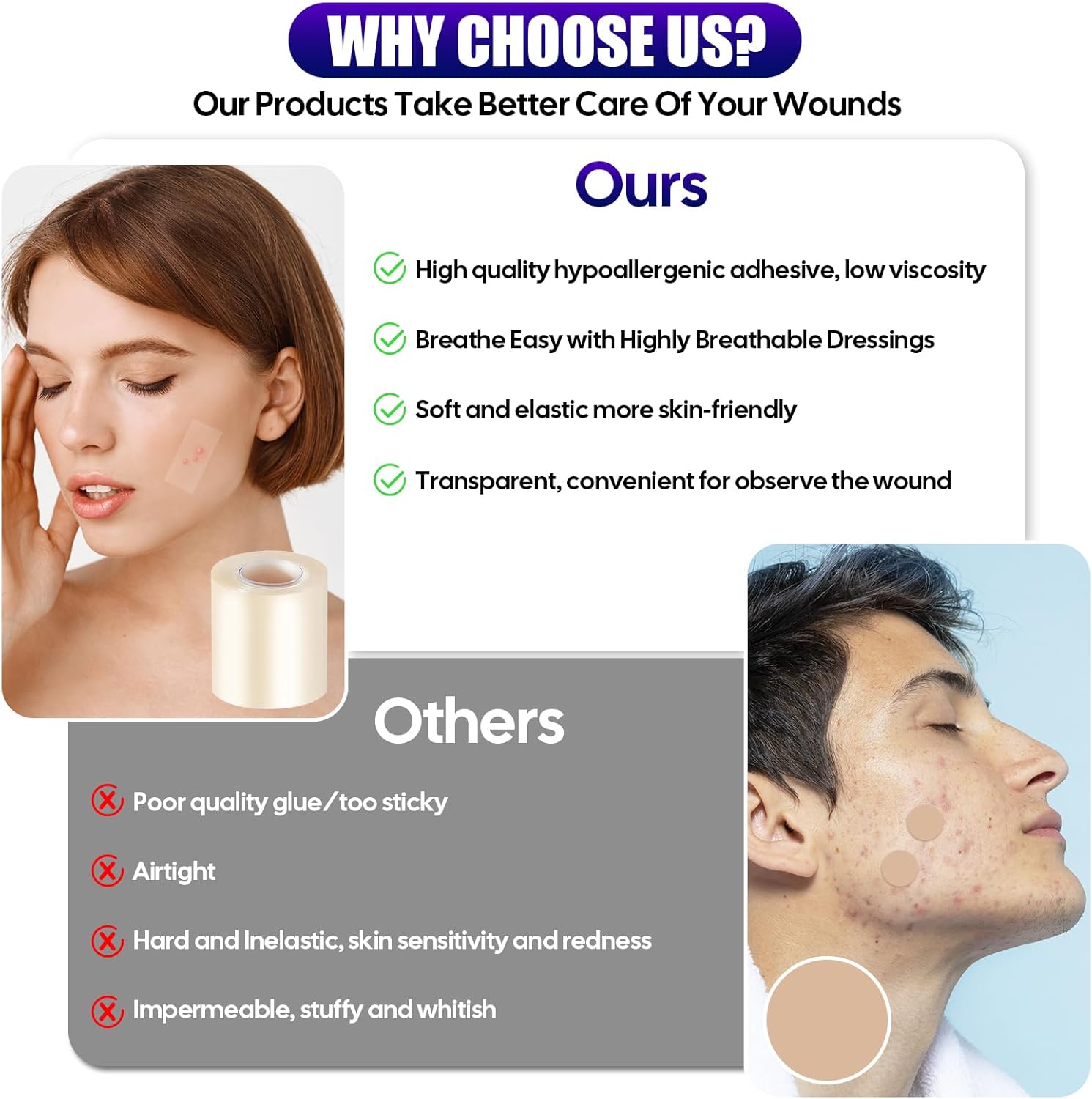 PROMOTE WOUND HEALING: Hydrocolloid pimple patch waterproof can provide a moist healing environment to promote microvascular proliferation and granulation tissue formation, reduce infection, thus advanced fluid management for faster healing, works better than pimple patches and you can make different sizes,very useful and easy to cut to any size! it is Medical-Grade Hydrocolloid Bandages comes in a small roll but works great and is way more efficient than the patches.