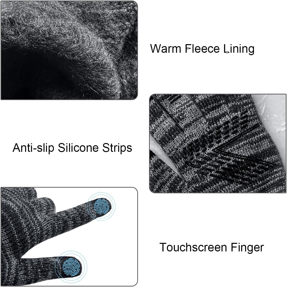 The winter hat and scarf set is double layers design,made of comfortable acrylic fabric and soft fleece lining.The winter gloves are made of Polyester and Spandex,with the warm Flannel lining and elastic cuff,enhancing the warmth and elasticity.