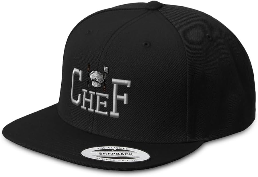 Our flat billed hats for guys feature crisp embroidery, a flat bill, anti-sweat band, and a reliable snapback closure — giving you the fit and comfort you need all day. These embroidered hats suit any setting — sports, outings, or professional kitchens.
