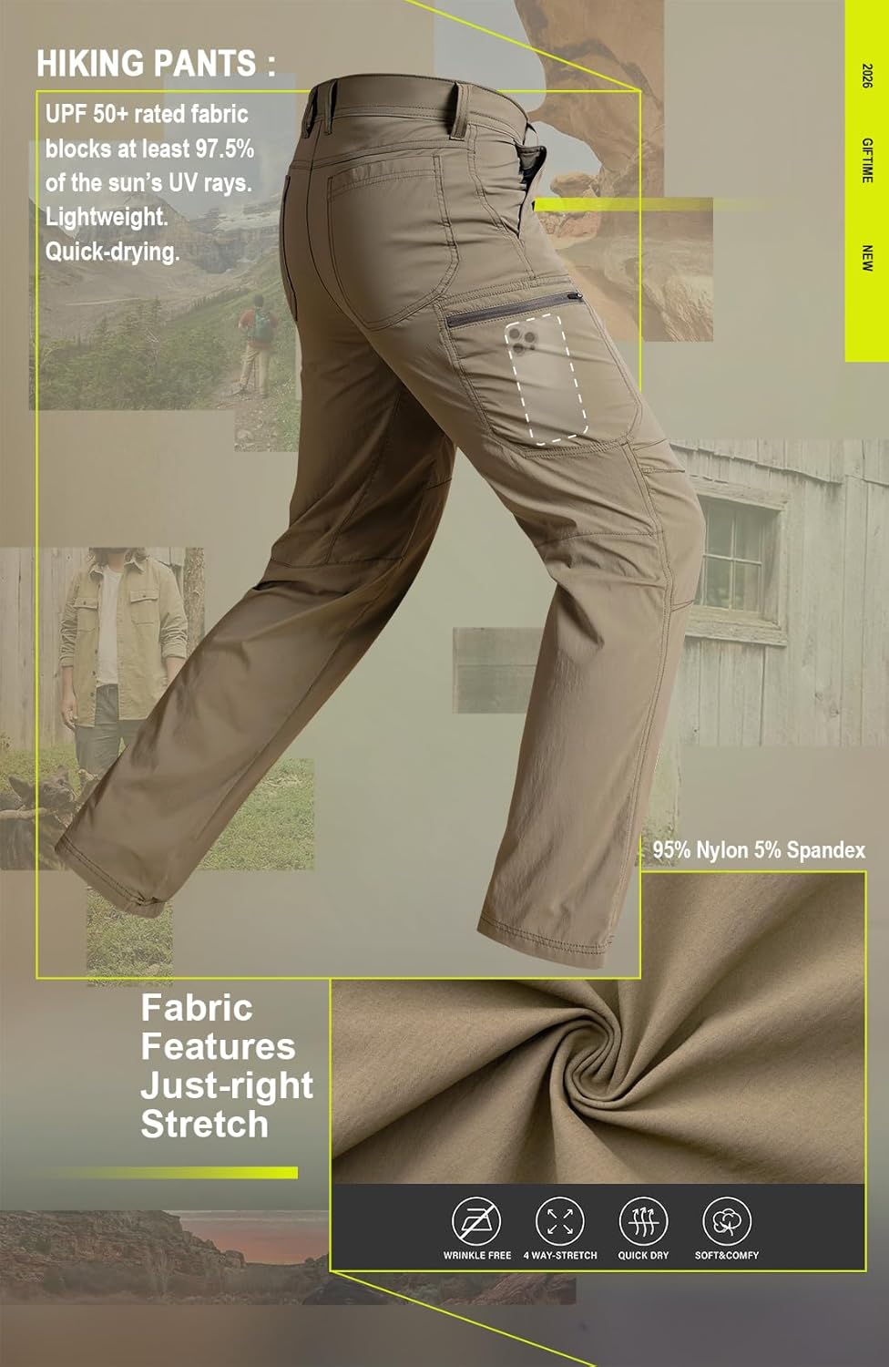 GIFTIME Mens Hiking Pants Details