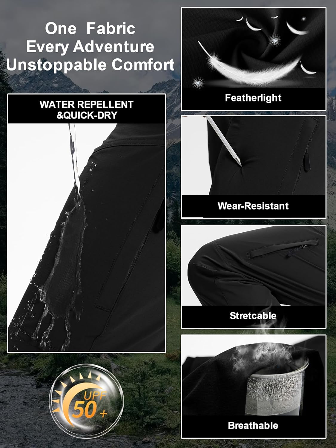The video showcases the product in use.The video guides you through product setup.The video compares multiple products.The video shows the product being unpacked. Mens lightweight hiking pants Merchant Video