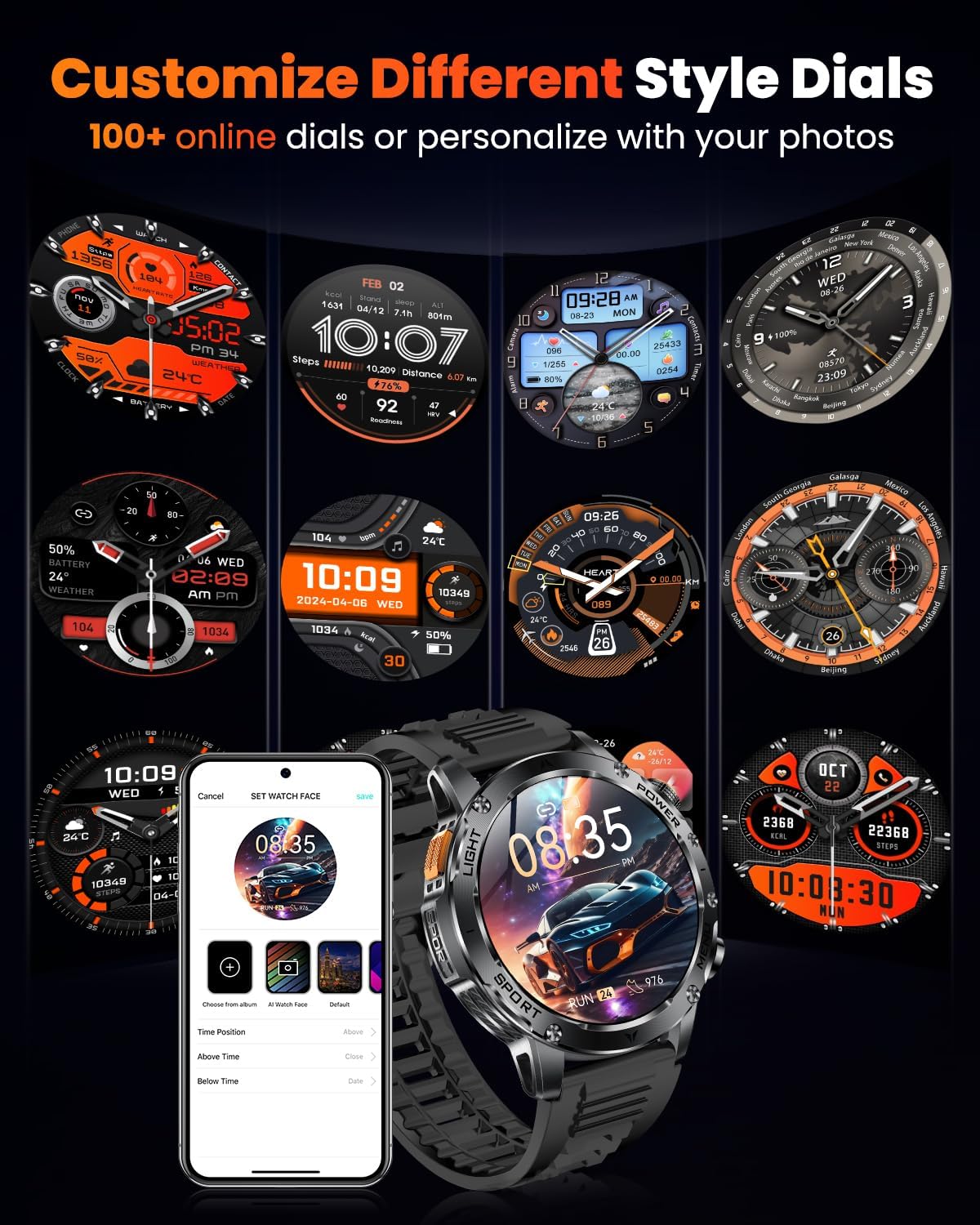 Military Standard Quality: This smartwatch is manufactured according to military standards and is made of stainless steel metal case, military watches have strong resistance to scratches, drops and polishing, and have passed the tests of temperature, high altitude and low air pressure, dust, salt spray and liquid contamination, easily adapts to different harsh working environments.